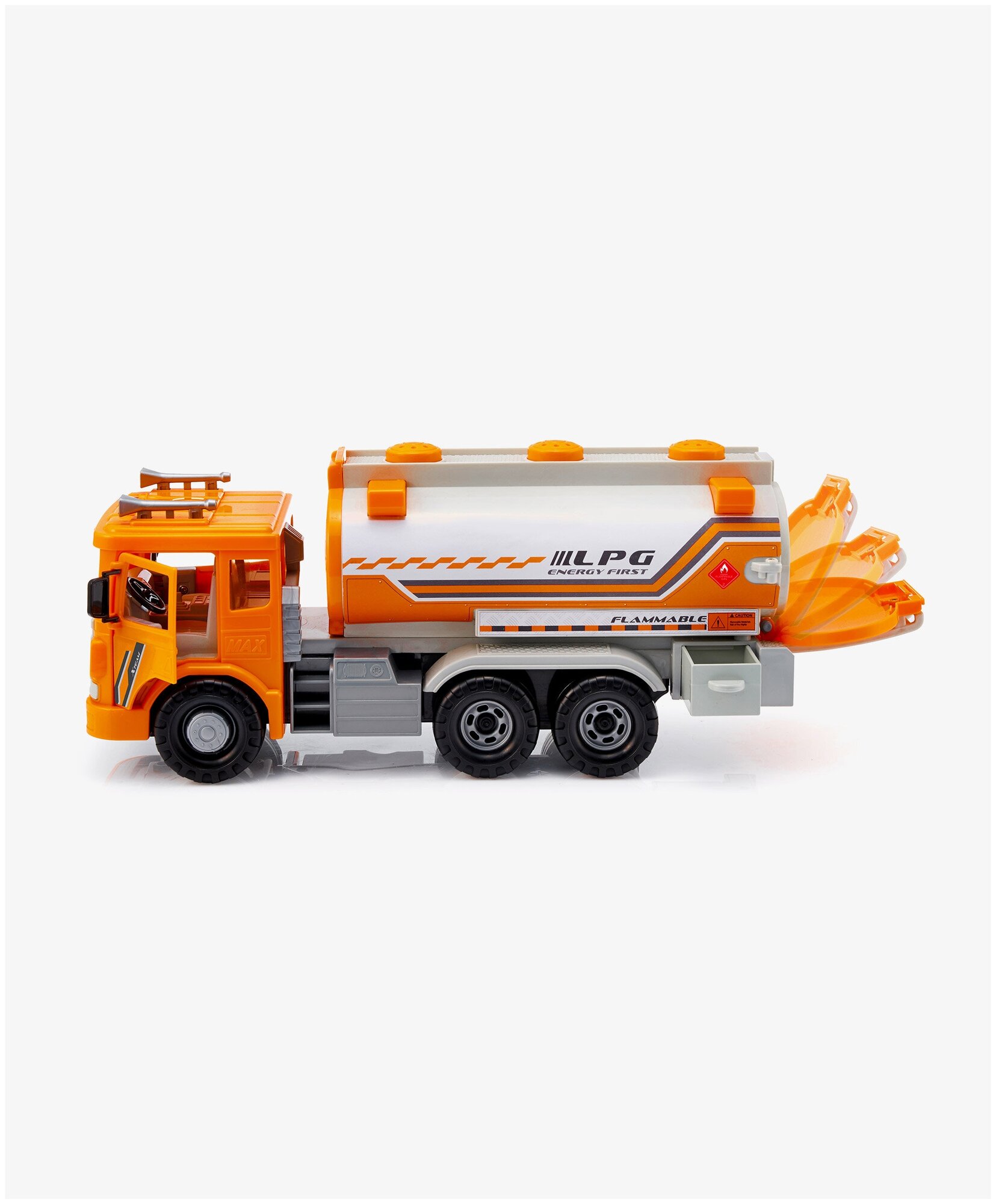 Мальчик может играть с бензовозом как на улице, так и в помещении, колеса не оставляют следов на поверхностях, так как у них есть специальные прорезиненные накладки.
