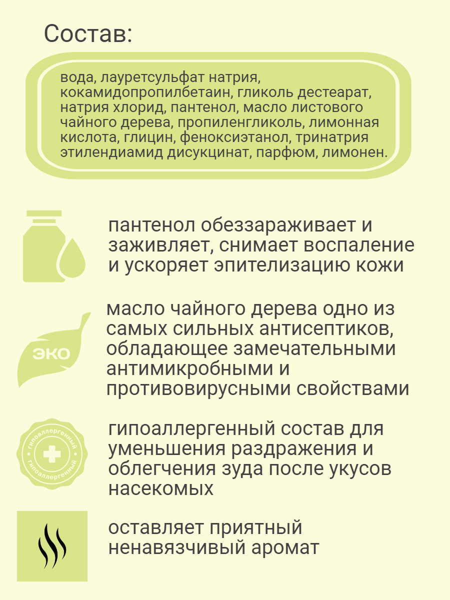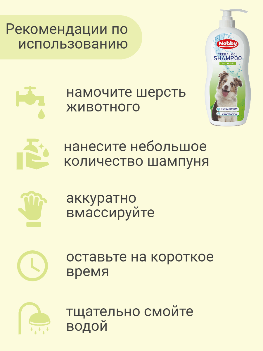 Шампунь для собак для отпугивания насекомых. Масло чайного дерева отпугивает паразитов и снимает раздражение или воспаление кожи, вызванные укусами насекомых. Помогает очистить, укрепить и увлажнить волосяные фолликулы. Шампунь увлажняет и адаптирован к значению pH у собак. Для всех пород собак.