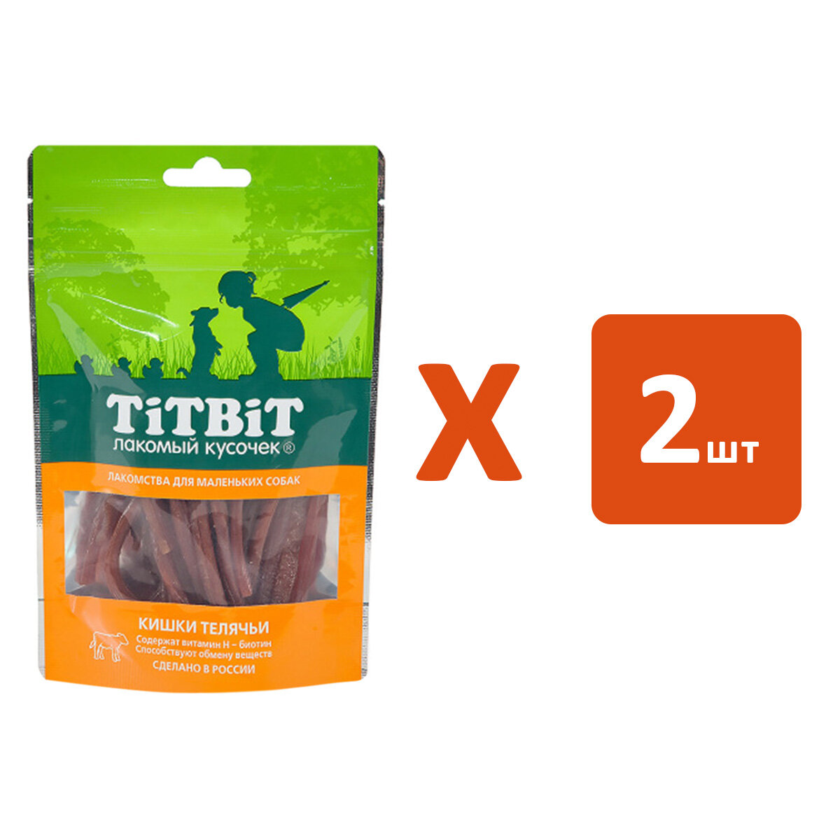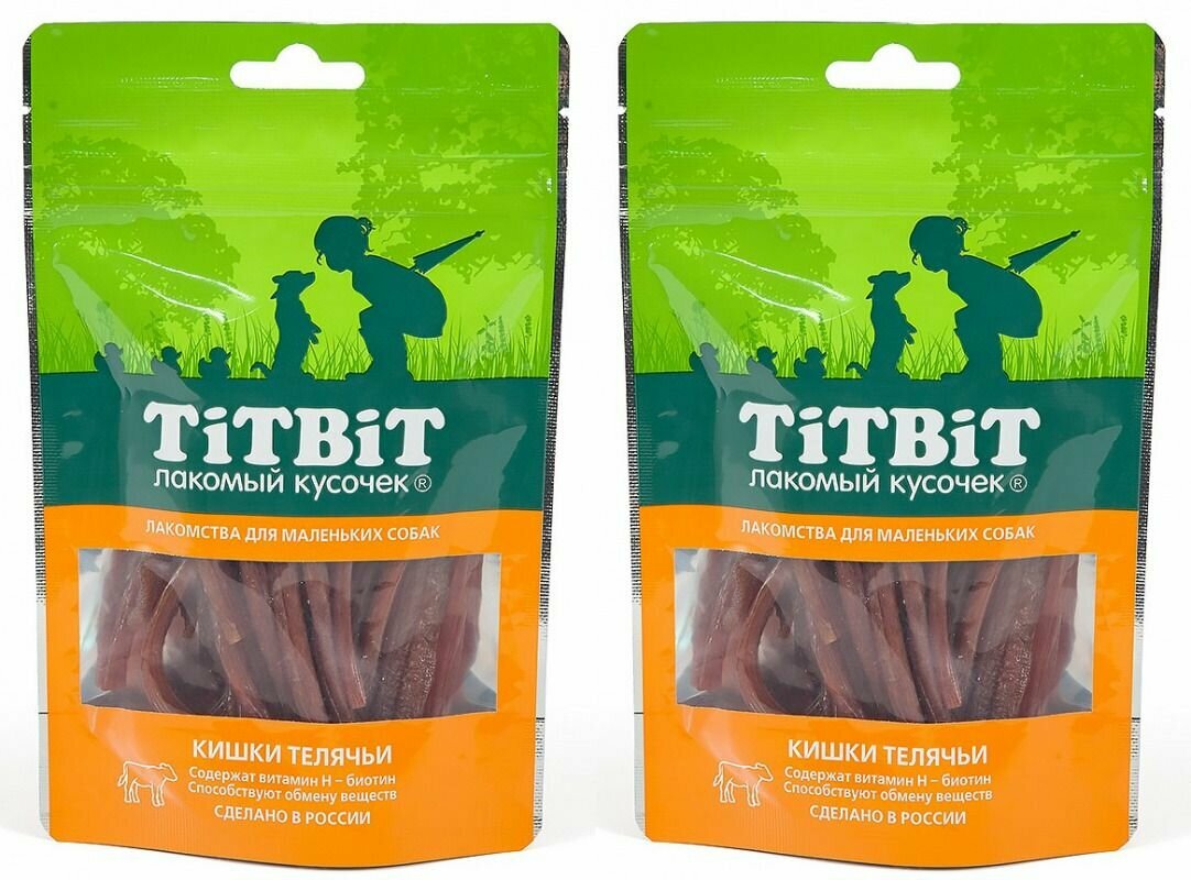 Лакомство для собак Titbit Кишки Телячьи 005 кг палочки, телятина, 50г