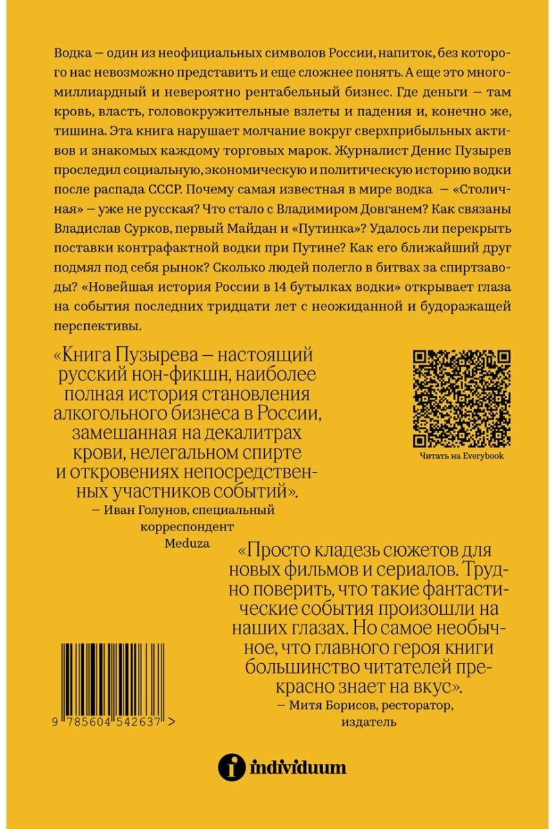 Новейшая история России в 14 бутылках водки. Как в главном русском напитке замешаны бизнес коррупция и криминал (Денис Пузырев); Individuum / Popcorn books, 2021