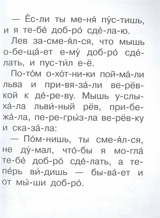 Выбрала в книжном магазине рассказы и сказки про животных в мягком переплёте. Книга подойдёт для тех детей, которые только учатся читать. Крупный шрифт и простота делают изучение книги лёгким. За счёт того, что слова в книге написаны по слогам, дети могут самостоятельно без помощи родителей читать её. Яркие и красочные картинки придают детям мотивации к чтению. Покупкой этой книги довольна.