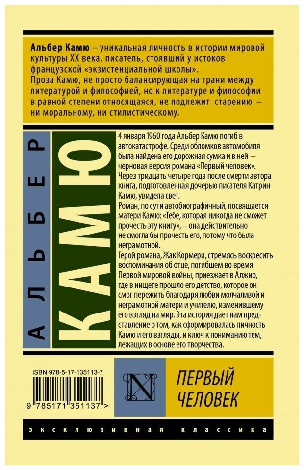 Книга: Первый человек (Альбер Камю); Издательство АСТ, 1951