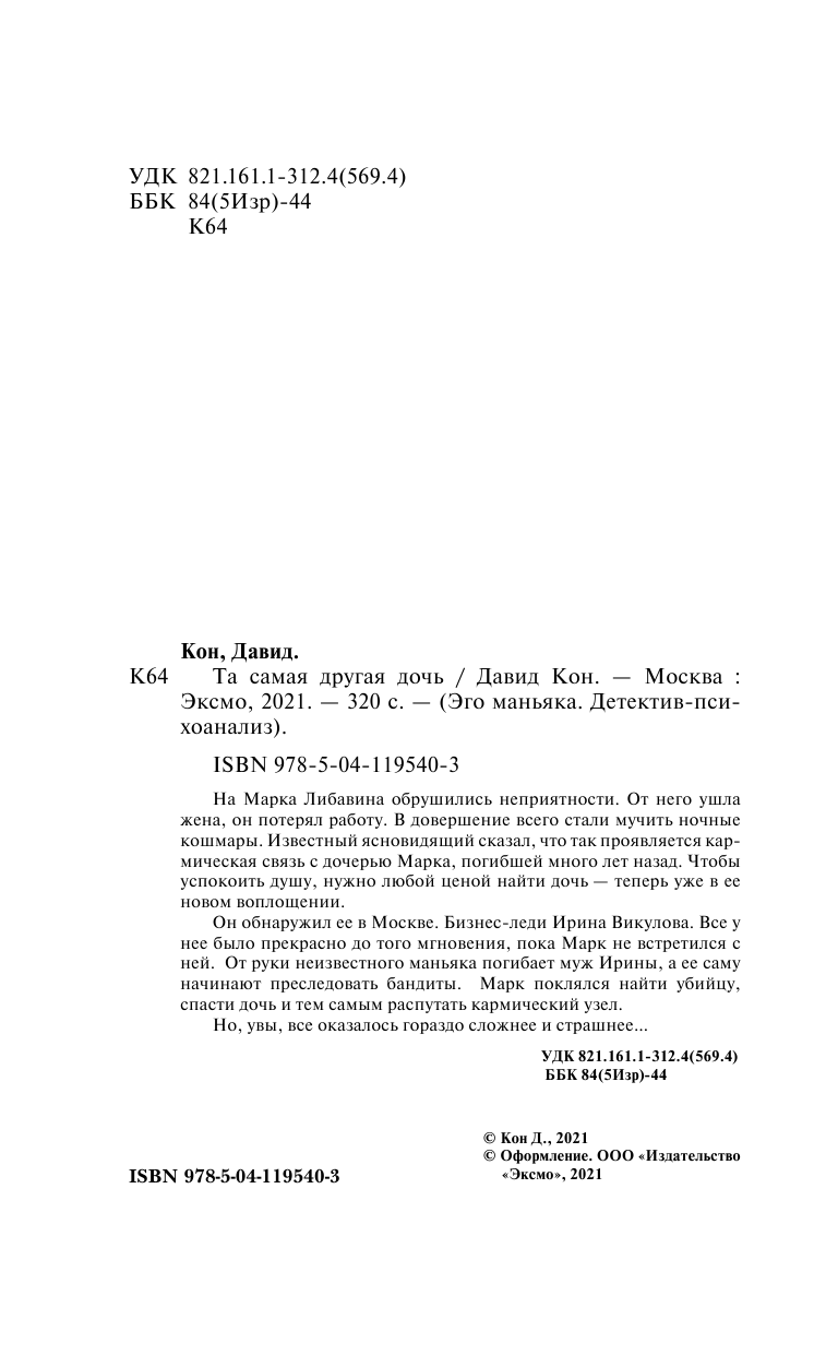 Книга: Та самая другая дочь (Давид Кон); Эксмо, Редакция 1, 2021