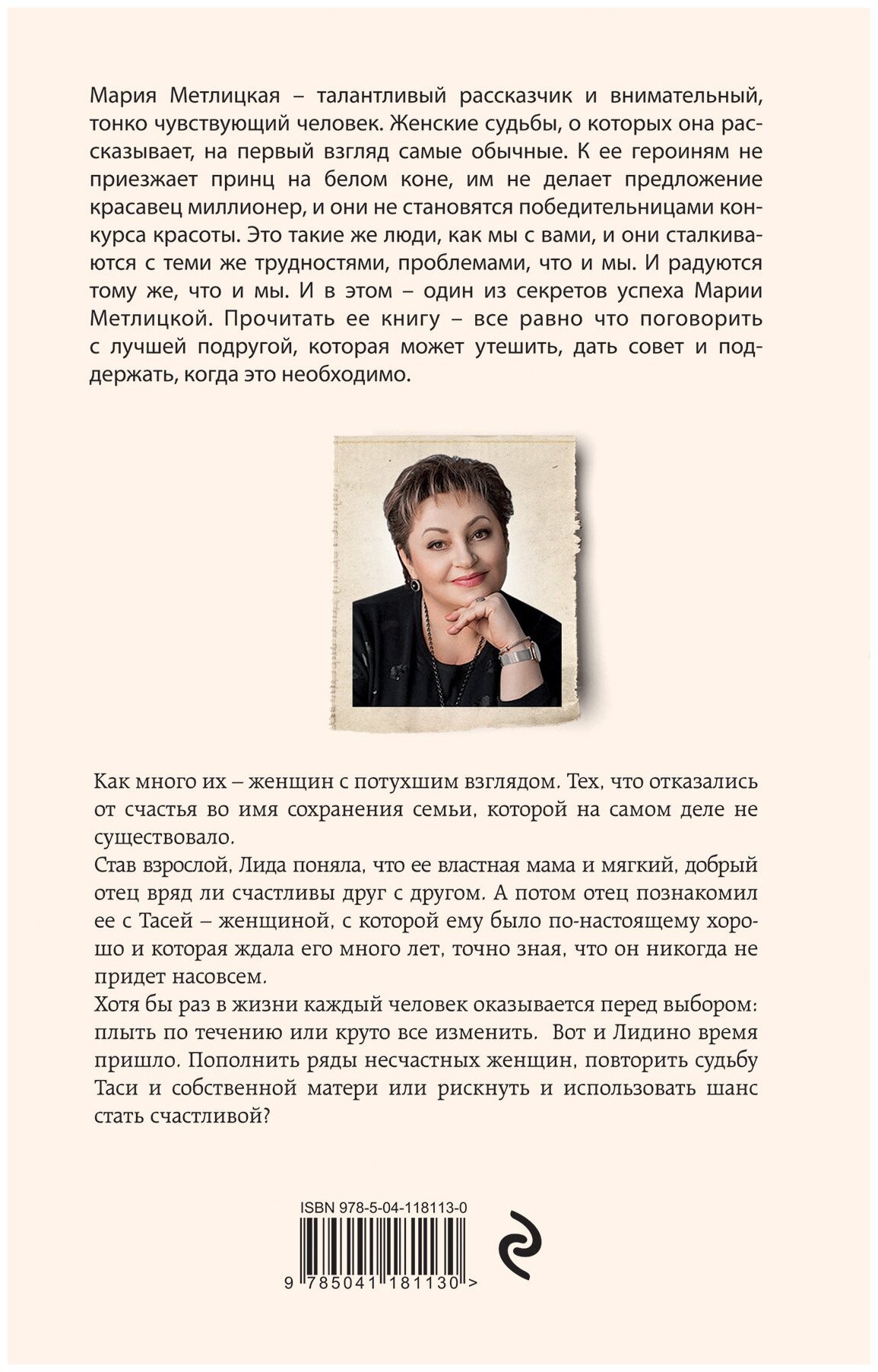 Ура, новая книга любимого автора! Прочитала ознакомительный фрагмент взахлёб. Все как обычно у Метлицкой: узнаваемые героини, ты как будто находишься рядом и переживаешь с ними все события. Простой лаконичный язык, читается легко. Конечно – приобретаю