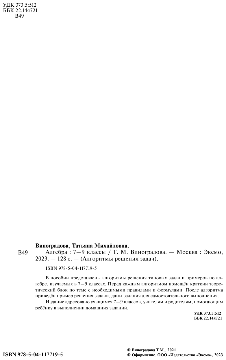 Книга: Алгебра. 7-9 классы (Виноградова Татьяна Михайловна); ООО "Издательство "Эксмо", 2021