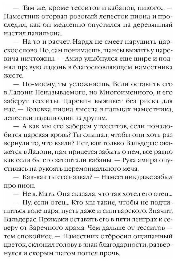 Отдельная сюжетная линия посвящена судьбе древнего царя Вальдераса, и она, как по мне, особенно прекрасна. Возможно, потому, что наиболее закончена и оттого изящна. А может, потому, что дружба, психологические финты и драма – это вообще то, что я больше всего люблю в книгах. В той части, что рассказывает про условную современность, всё это тоже есть, но там на небольшом пространстве текста сосредоточено так много персонажей и сюжетных линий, что погружение получается не таким глубоким.