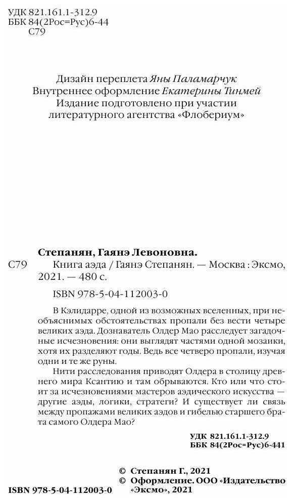 Книга: Книга аэда (Степанян Гаянэ Левоновна); ООО "Издательство "Эксмо", 2021