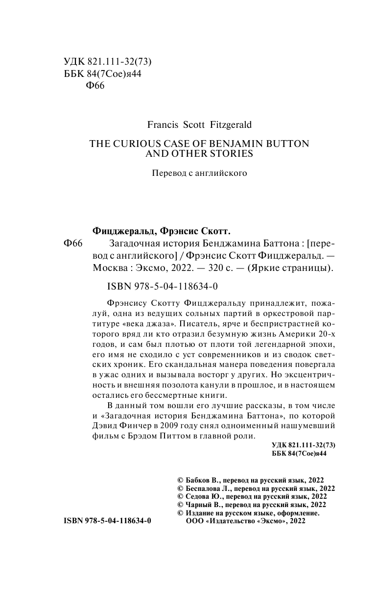 Загадочная история Бенджамина Баттона (Фицджеральд Фрэнсис Скотт); ООО "Издательство "Эксмо", 2021