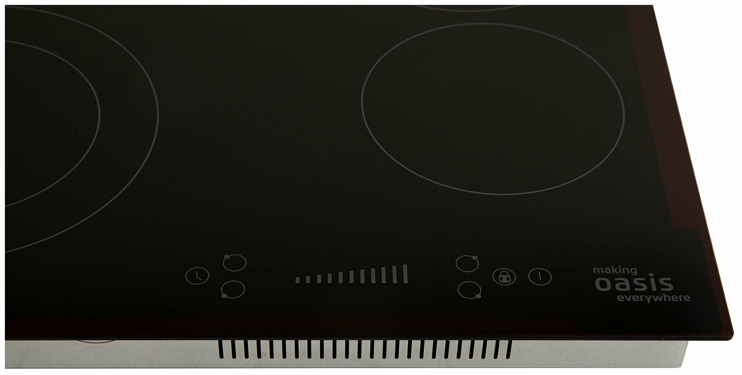 Электрическая встраиваемая варочная панель – современный бытовой прибор, помогающий без труда приготовить множество блюд. Электрическая варочная панель «making Oasis everywhere» оснащена сенсорным управлением с настраиваемым таймером, что позволяет комфортно и легко работать с прибором. Прочный стеклокерамический материал и надёжная система безопасности с самодиагностикой дают возможность пользоваться варочной панелью на протяжении долгого срока службы.