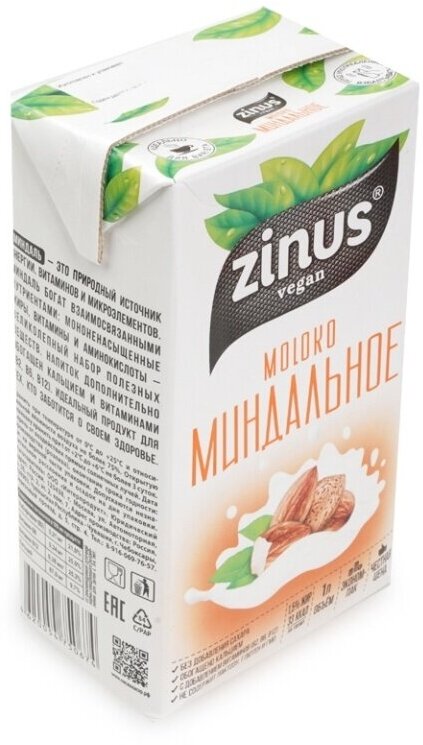Молоко миндальное Zinus 1.5% 1л