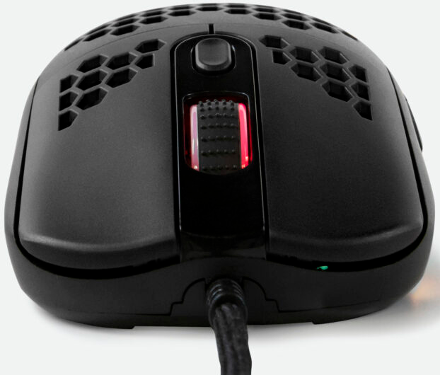 Arozzi обладает продуманной, точно выверенной конструкцией и отлично подходит как для хвата пальцами, так и всей ладонью. UV-покрытие в сочетании со структурой отверстий обеспечивает отличное сцепление руки с эргономичным корпусом мыши. На днище модели располагаются крупные тефлоновые накладки с закругленными краями, обеспечивающие отличное скольжение по любой поверхности. Подключение осуществляется при помощи 1.8-метрового USB-кабеля, изготовленного по технологии Paracord.