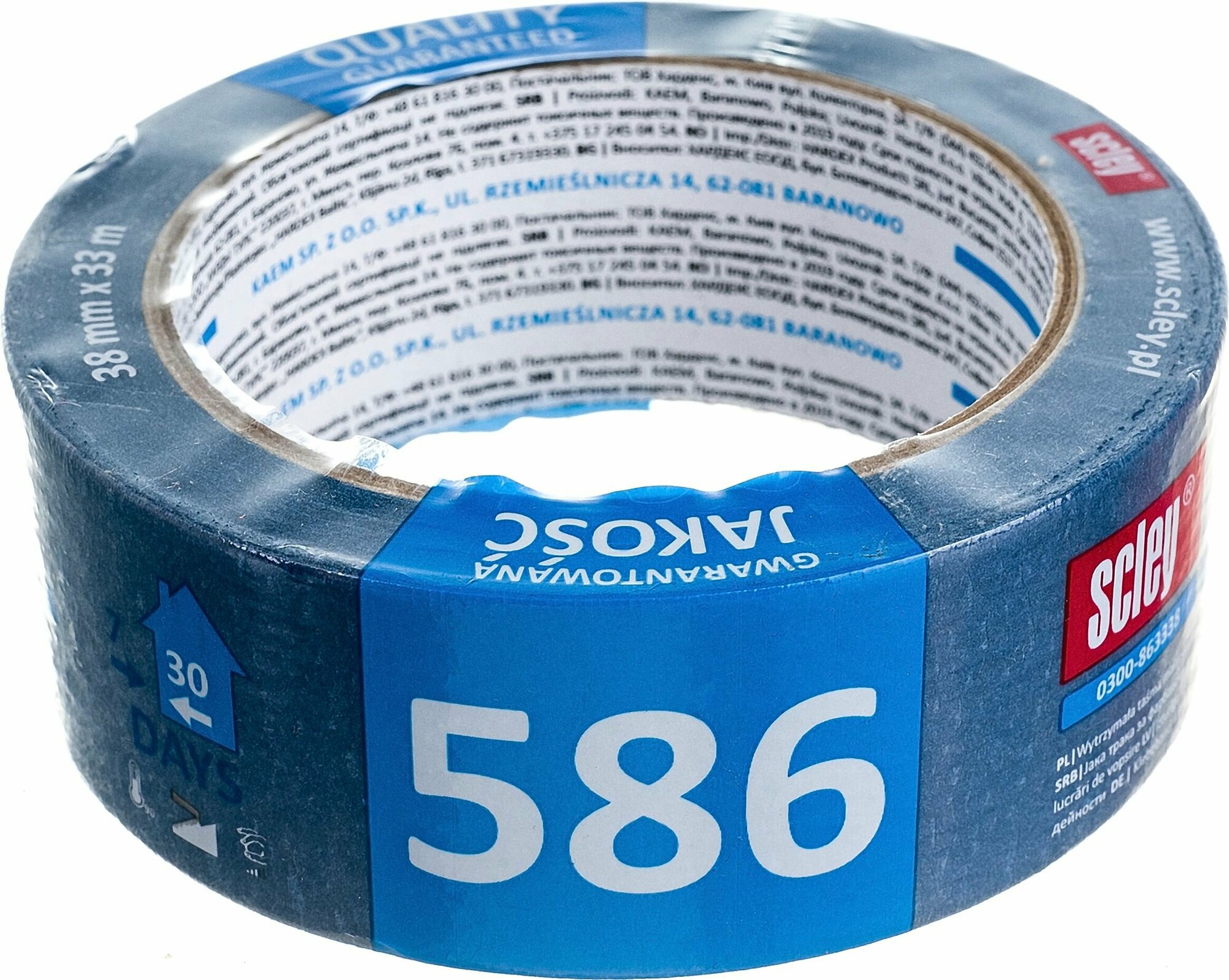 Малярная лента SCLEY 38 мм х 33 м, серия 586, синяя применяется для защиты отдельных сегментов и участков поверхности при проведении наружных и внутренних малярных и штукатурных работ. Обеспечивает идеально четкие границы при окрашивании. Чистый демонтаж, не оставляет следов клея после удаления. Она совместима со всеми видами краски и устойчива к УФ-излучению. Обеспечивает четкие и ровные границы окрашивания благодаря хорошему прилеганию к поверхности, даже при нанесении нескольких слоев ленты. Основа клейкой ленты — крепированная бумага с влагостойкой пропиткой. Особенности: Для ровной и ребристой поверхности. Стойкость к температурам до 120?. Средняя прочность приклеивания. Позволяет получить идеально ровные углы Специальный акриловый клей обеспечивает хорошую устойчивость к УФ-излучению и различным погодным условиям. Маскировка поверхностей при проведении внутренних и наружных работ, а также при работе с деликатными полами (глазурованные поверхности, акриловые поверхности).