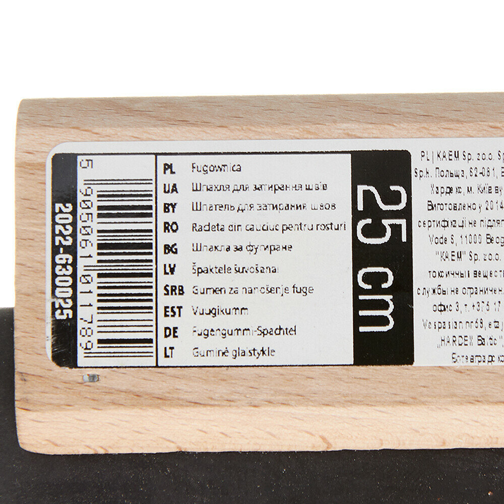 Шпатель HARDY для затирания швов 25см применяется для затирки межплиточных швов, для проведения финишных работ по нанесению шпаклевочного слоя на поверхности, походит для обработки гладких поверхностей, используется для наружных и внутренних работ. Прочность и гибкость позволяют с точностью наносить материал. Рабочая часть полотна изготовлена из резины, пластичный материал, который не повреждает поверхность плитки или кафеля. Ручка выполнена из прочного дерева. После работы шпатель необходимо промыть водой.