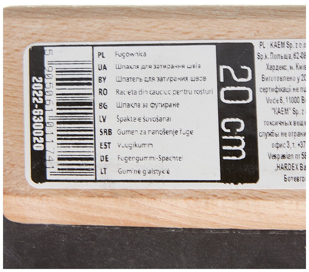Шпатель HARDY для затирания швов 20 см применяется для затирки межплиточных швов, для проведения финишных работ по нанесению шпаклевочного слоя на поверхности, походит для обработки гладких поверхностей, используется для наружных и внутренних работ. Прочность и гибкость позволяют с точностью наносить материал. Рабочая часть полотна изготовлена из резины, пластичный материал, который не повреждает поверхность плитки или кафеля. Ручка выполнена из прочного дерева. После работы шпатель необходимо промыть водой.