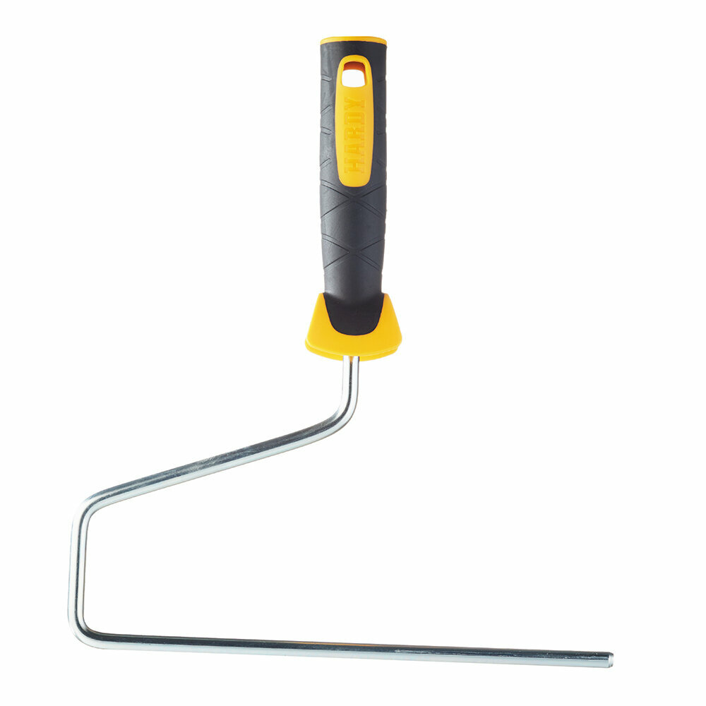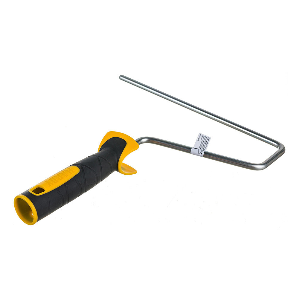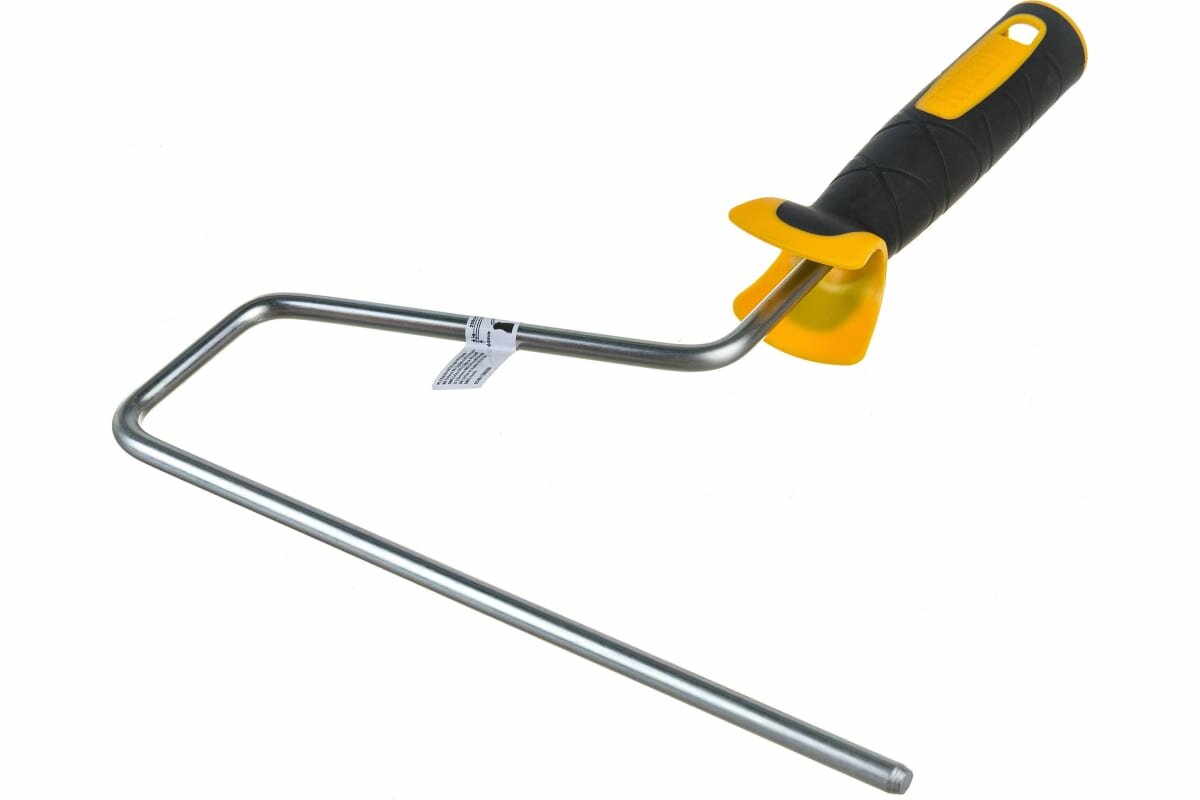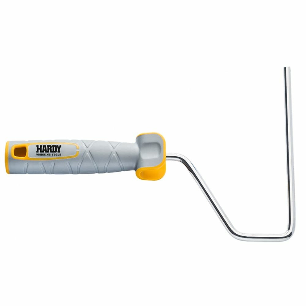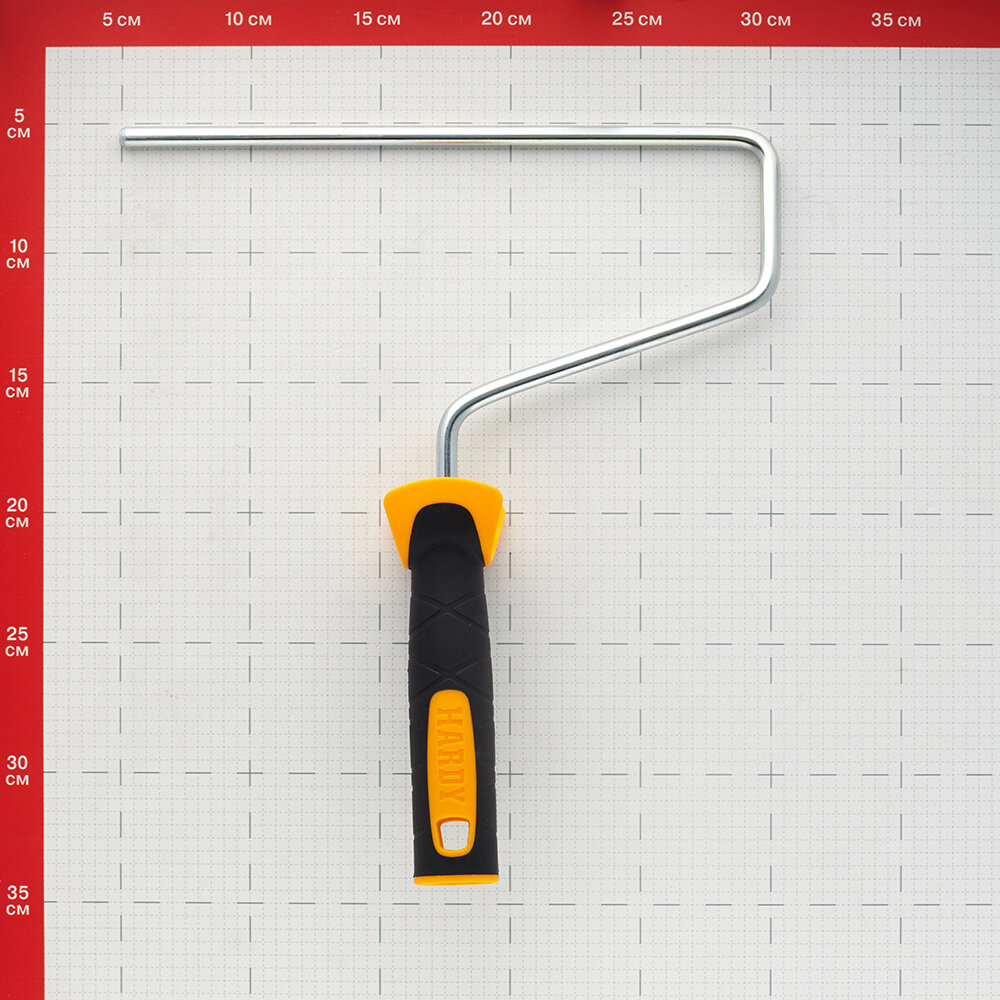 HARDY Ручка для валиков двухкомпонентная, серия 12, ширина 25 см, 8 мм, Специальный металлический кронштейн (бюгель) изогнутой формы, на который крепится съемный валик. При правильном подборе валика и рукояти представляет собой единый инструмент, позволяющий легко и быстро наносить различные лакокрасочные материалы. Диаметр металлического прута бюгеля должен совпадать с внутренним диаметром валика. Строительный инструмент с длительным сроком службы, сделанный из оцинкованной стали, с возможностью удлинения за счет телескопического стержня. Инструмент не скользит в руке и его удобно удерживать в процессе нанесения раствора или краски, а также легко очищать после использования. Двухкомпонентная рукоятка имеет эргономичную форму и служит для прочного захвата инструмента. Min длина валика: 230 мм. Мах длина валика: 280 мм. Материал ручки: двухкомпонентная. Бюгель: 8 мм. Система крепления: бюгельная. Длина ручки: 300 мм. Комплектация: Бюгель 8 мм (2К), Упаковка .