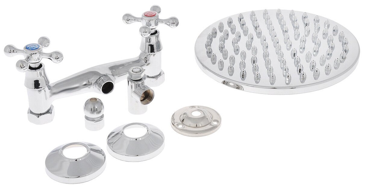 | Комплект поставки | смеситель; верхний душ; душевая штанга; эксцентрики; отражатели; крепление к стене |