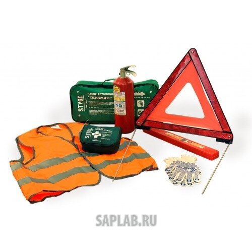 | Состав набора | аптечка; знак аварийной остановки; огнетушитель; перчатки; светоотражающий жилет |
