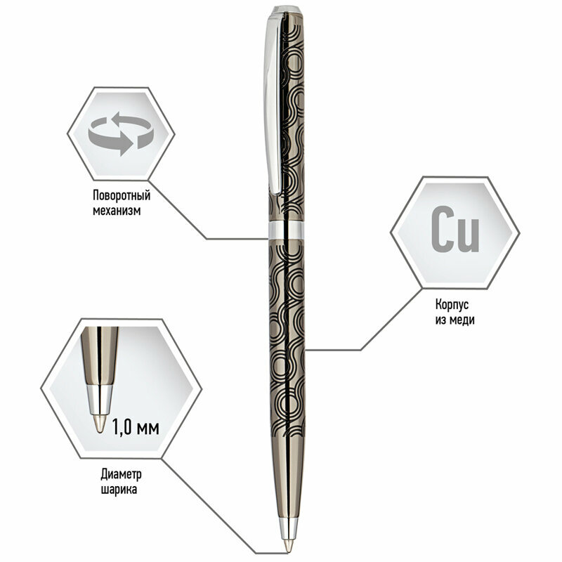 Клип утончённой формы поможет фиксировать изделие на блокнотах, ежедневниках и карманах одежды. Ручка подходит для мягкого быстрого письма, так как диаметр её пишущего узла составляет 1 мм.