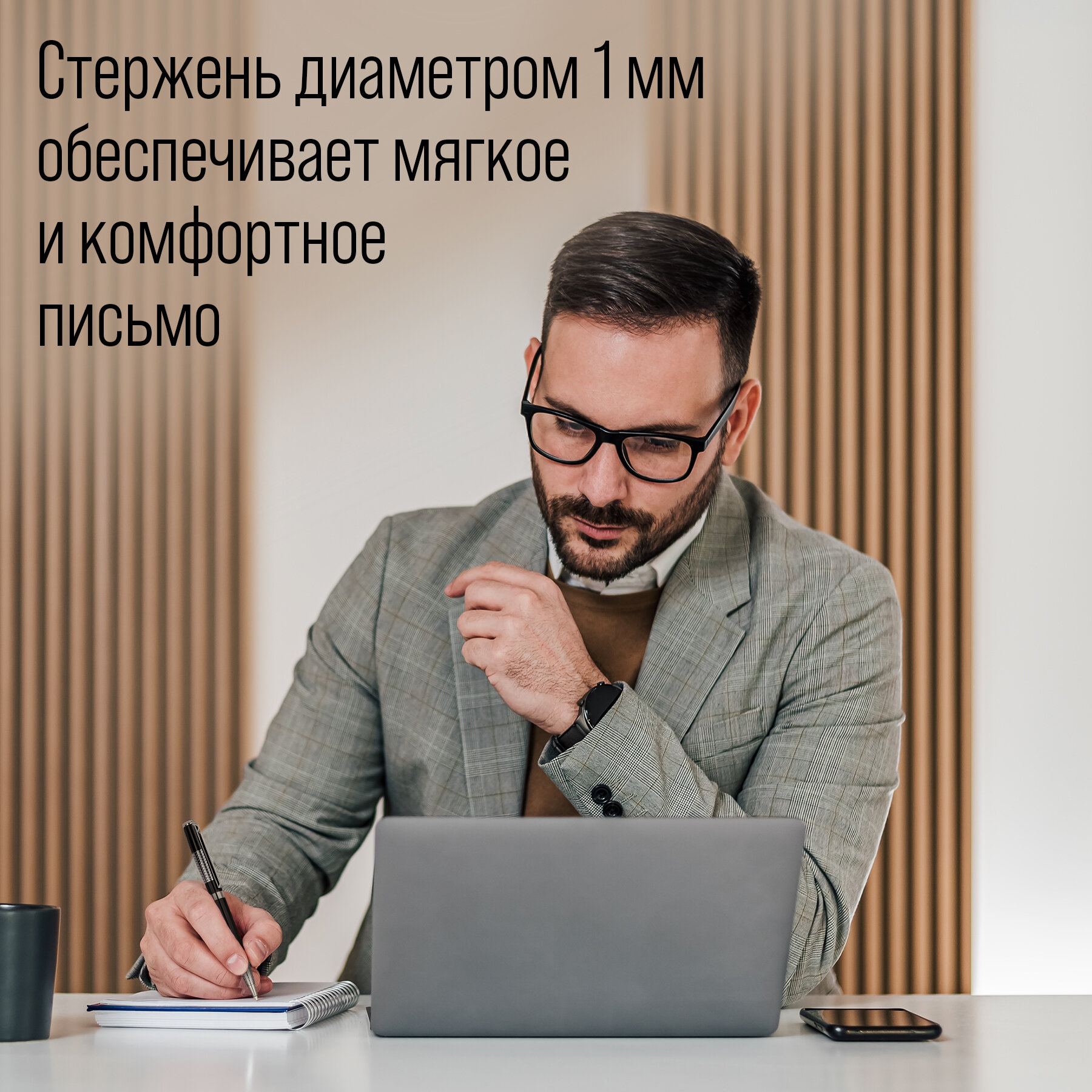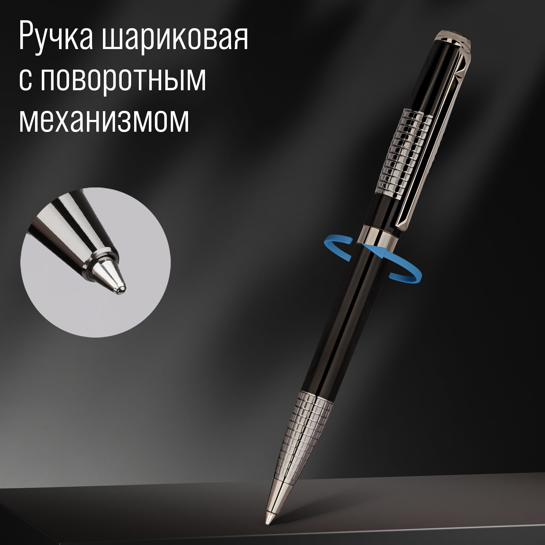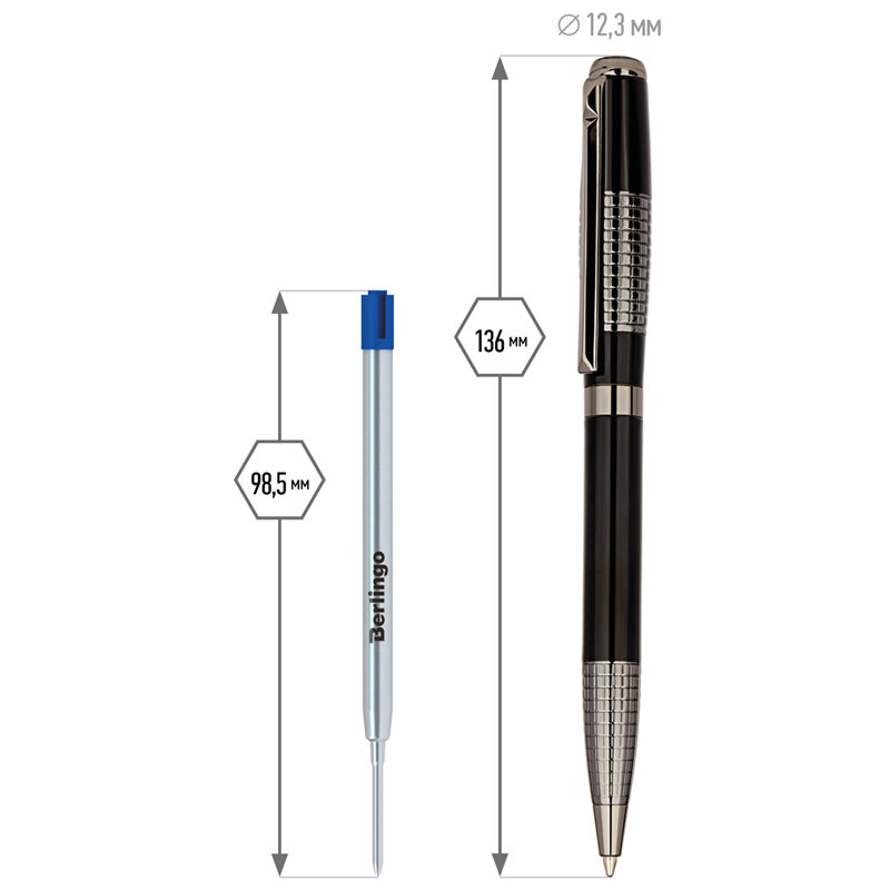 Ручка оснащена поворотным механизмом подачи стержня, а пишущий узел диаметром 1 мм сделает письмо максимально мягким.