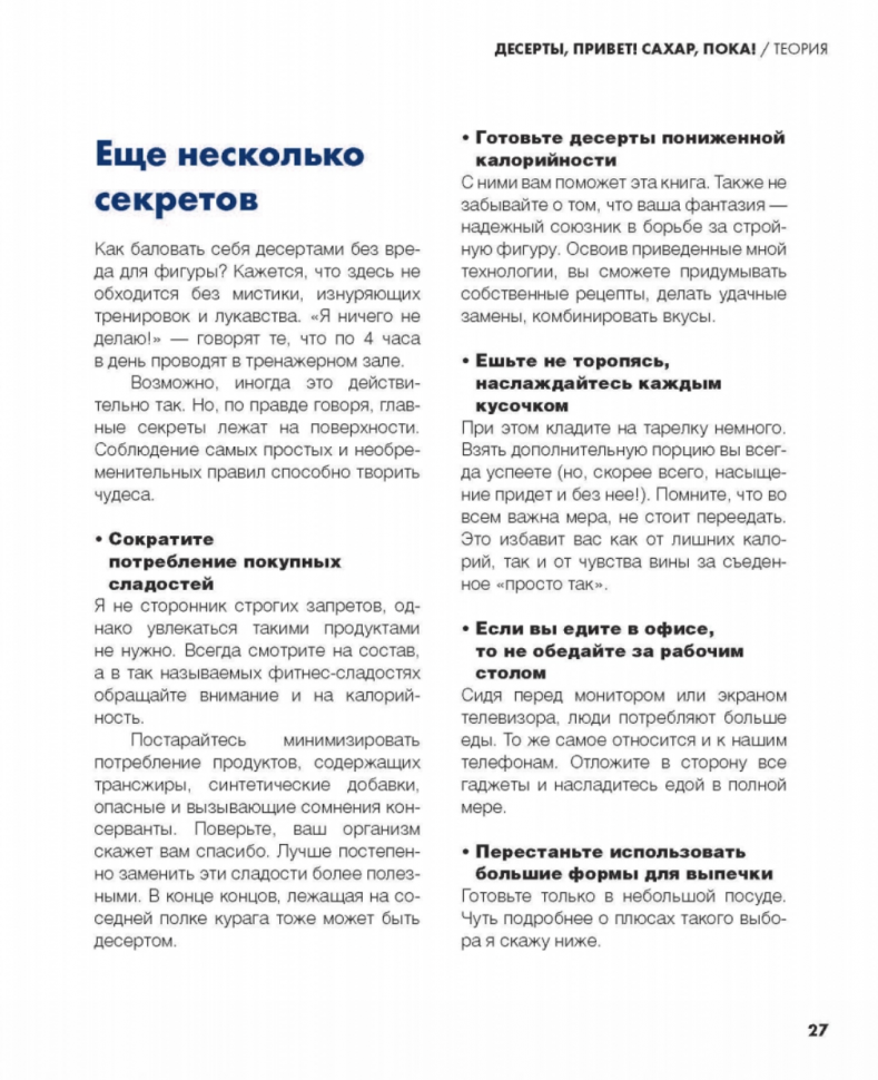 Данная книга содержит не только много простых и потрясающе вкусных десертов без сахара, но ещё и много полезной информации по приготовлению десертов. А какие там потрясающие фотографии! Просто просматривать их - уже настоящее удовольствие!!!
