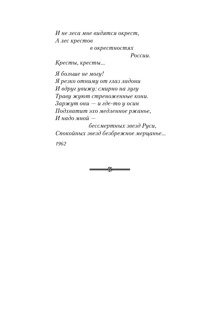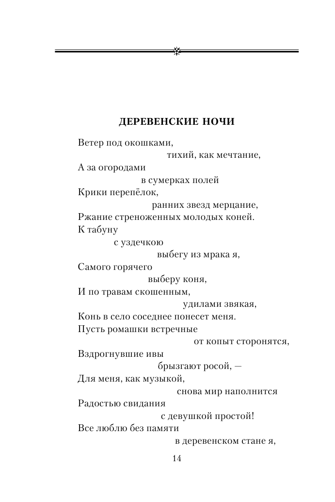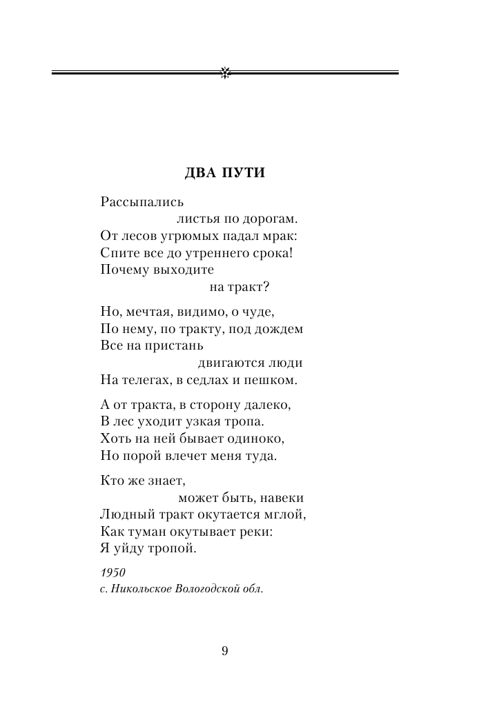 Понравилось оформление серии, сделано со вкусом. В итоге беру уже третью книгу. Удобный небольшой формат, твёрдый переплёт. Стихи объединены в циклы. В книгах этой серии обычно нет вступительных статей и комментариев, но в данном издании в конце есть "Хроника жизни и творчества Николая Рубцова".