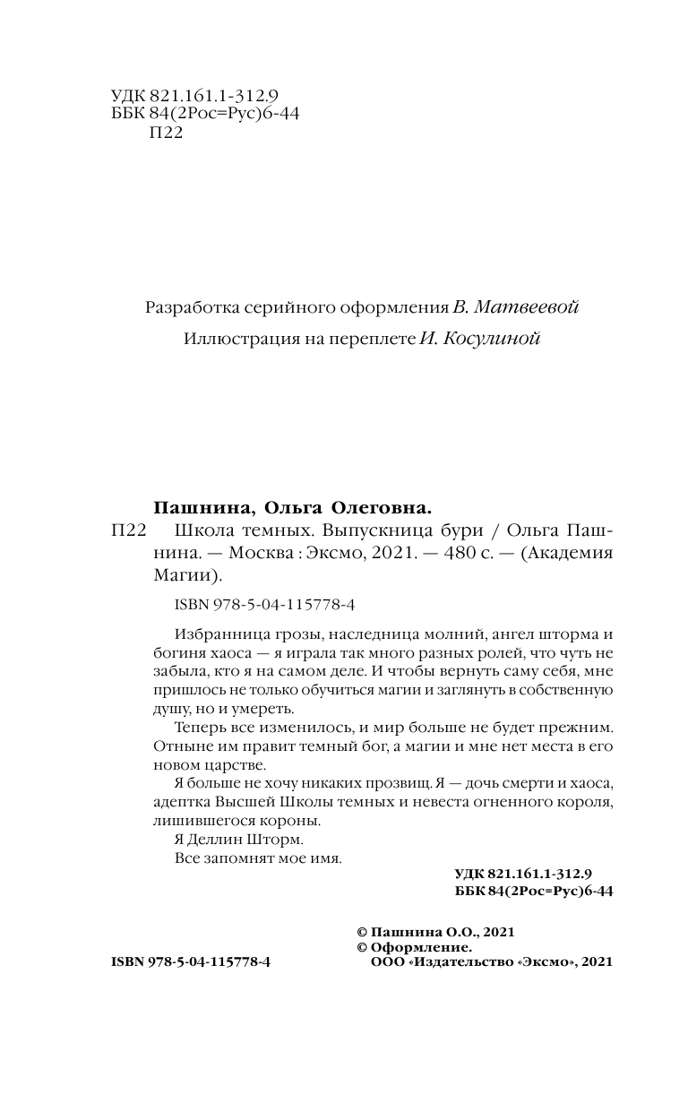 Школа темных. Выпускница бури (Ольга Пашнина); Эксмо, Редакция 1, 2021