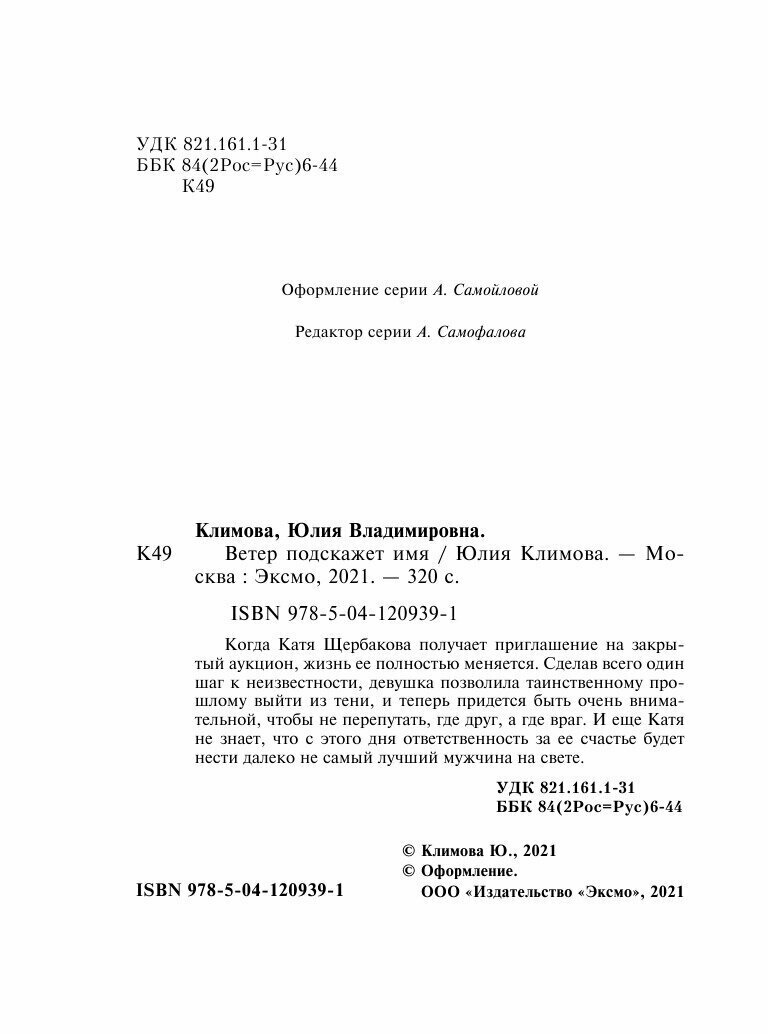 Книга: Ветер подскажет имя (Климова Юлия Владимировна); ООО "Издательство "Эксмо", 2021