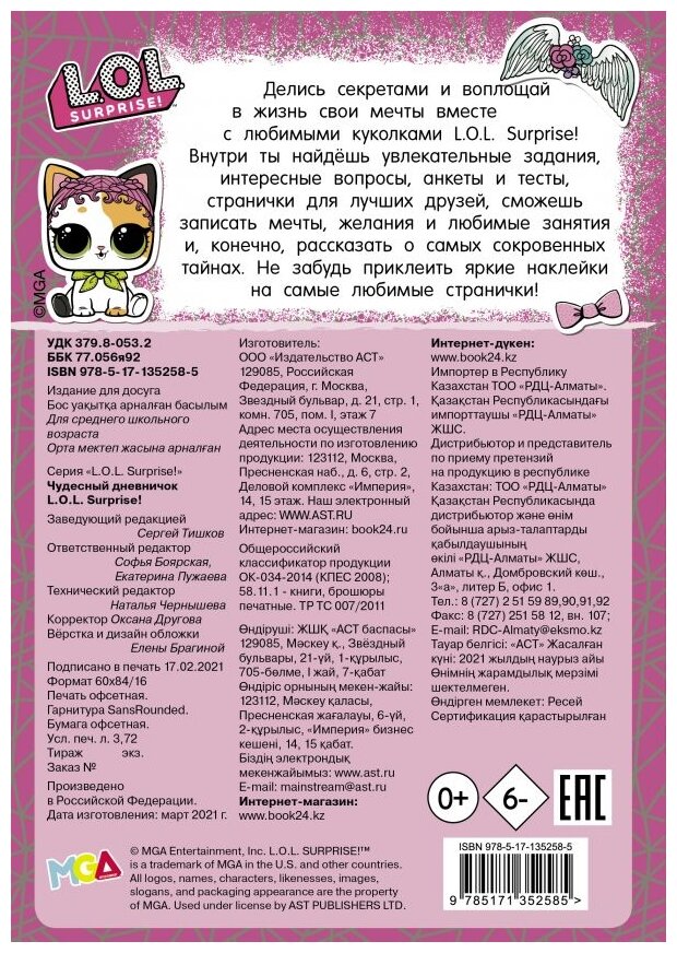 Чудесный дневничок L.O.L. Surprise! (Боярская Я.; Пужаева Е.); ИЗДАТЕЛЬСТВО "АСТ", 2021