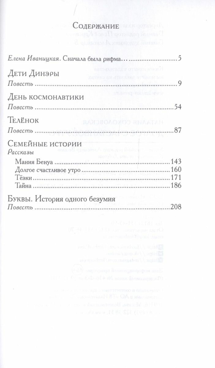 Удивительная книга! Получаю огромное удовольствие, читая ее. Ничего подобного в нео-современной литературе давно не встречала! И уже не надеялась, признаться. Лёгкий, классический стиль изложения - не замечаешь, как погружаешься в какое-то вроде соседнее дружеское, знакомое, но и нереальное пространство. Невероятно зримые и точные образы. И герои, судьбой которых проникаешься, как судьбой родных людей!.. Все повествование , каждая история пронизана прожитым искренним чувством. “День Космонавтики» и «Телёнок» - протрясающие! Я даже пока и читать-то ещё ничего после них не могу. Прочитала и думаю - надо пройтись.. Пожить с этим. Не торопиться читать дальше. Падающие яблоки в Виталиковом саду застучали и у меня внутри. Вместе героиней летала, а с Васяткой плакала... Просто и сильно - до слез.