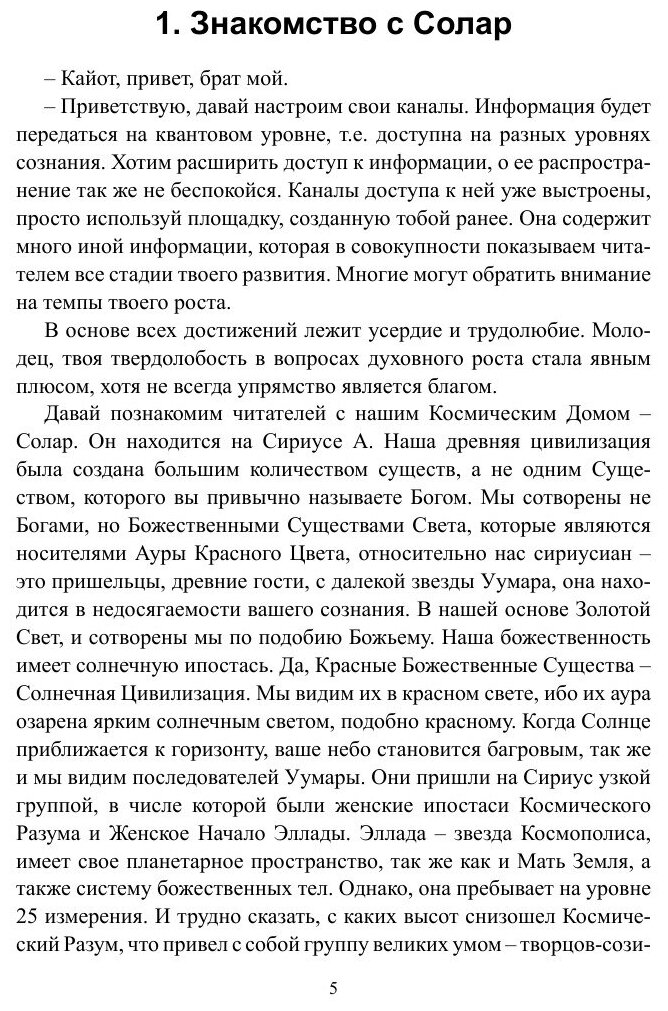 Книга несомненно будет полезна и интересна всем, кто так или иначе понимает, чувствует и сопричастен к процессу, так называемого, Перехода. Для этих людей книга будет не только источником новой информации и подтверждением уже ходящей по миру, но и энергетическим порталом, связью с миром Сириуса и Светлых сил.
