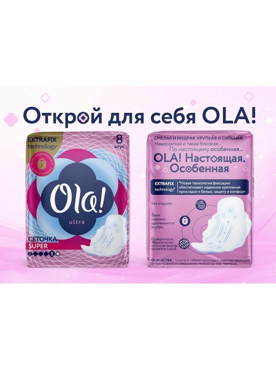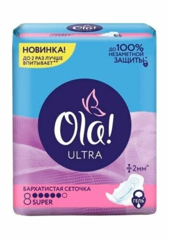 | Полное наименование | Прокладки гигиенические Ola! Ultra Бархатистая сеточка Super 8 шт |