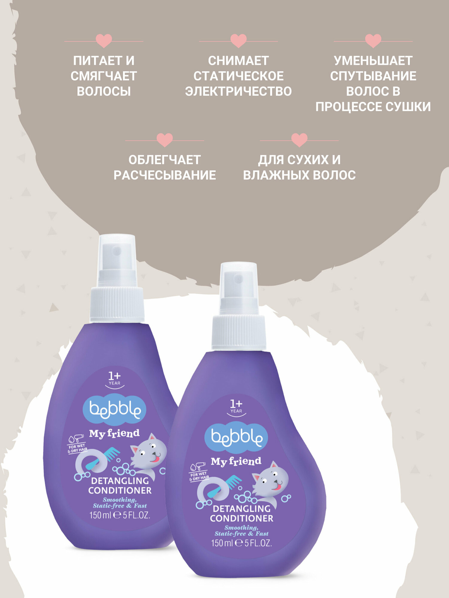 Предохраняет от спутывания и способствует легкой укладке волос.