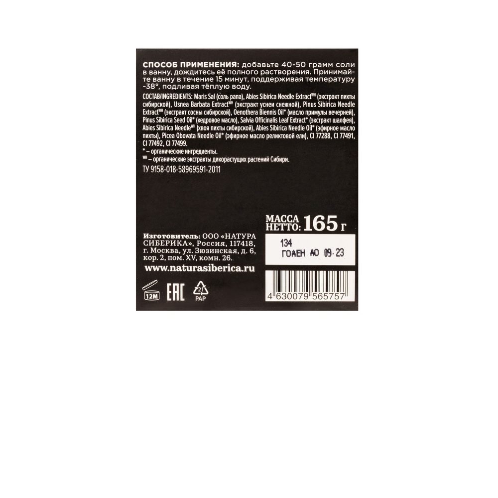 | Состав | maris sal (соль рапа) with infusions of abies sibirica needle extractwh* (экстракт пихты сибирской), usnea barbata extract wh* (экстракт уснеи снежной), pinus sibirica needle extractwh* (экстракт сосны сибиской); abies sibirica needlewh (хвоя пихты сибирской), abies sibirica needle oil (эфирное масло пихты), picea obovata needle oil (эфирное масло реликтовой ели), ci 15985, ci 19140, ci 42090, ci 14720 |