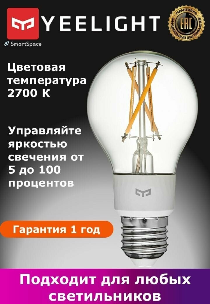 Светодиодная лампа YEELIGHT YLDP12YL сочетает в себе лучшие традиции классики и современности. Модель имеет традиционную форму груши, при этом выполнена с применением новейших светодиодных технологий. В лампу встроен Wi-Fi-модуль умного дома, что позволяет легко управлять освещением в помещении удаленно.