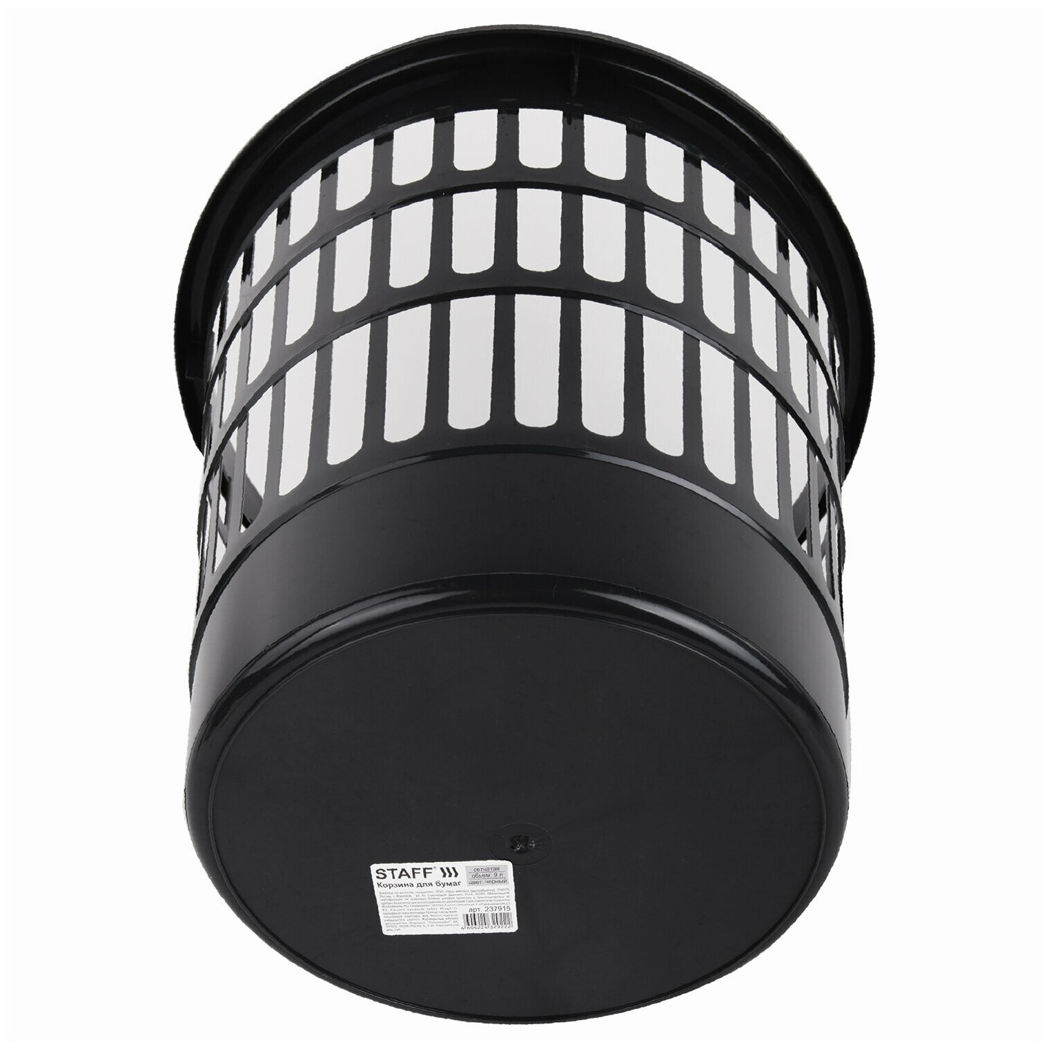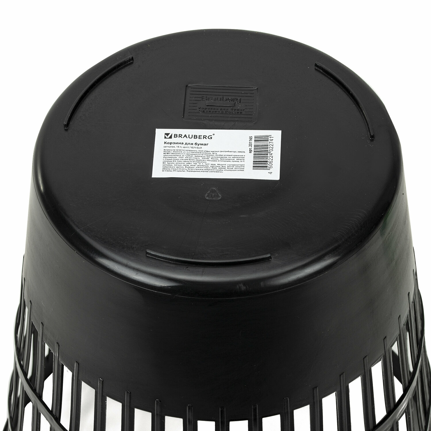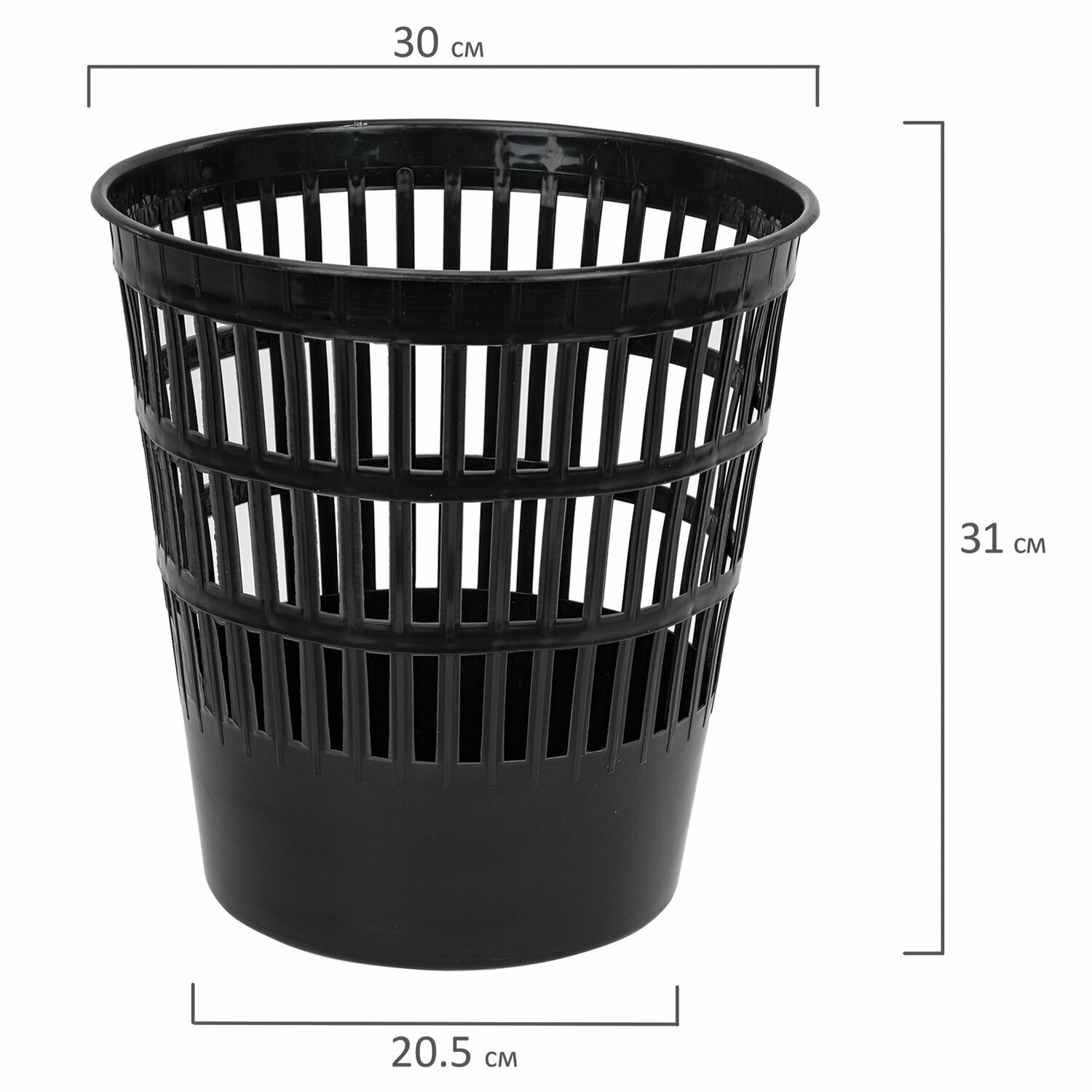 Изготовлена из высококачественного пластика черного цвета. Благодаря объему 16 литров способна вместить большое количество мусора. Корпус расширяется к верху: диаметр основания составляет 20,5 см, а диаметр верхней части - 30 см. Высота - 31 см. Легкость и компактность корзины позволяет перемещать её с одного места на другое. Корзина удобно помещается под рабочим столом. Рекомендуемый размер мешка для мусора - 50х60 см, объем - до 30 литров.