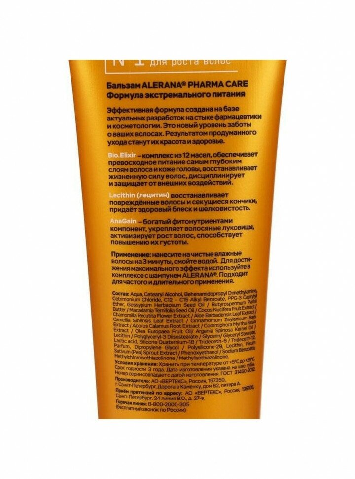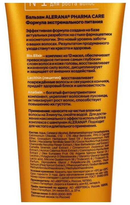 Бальзам Alerana Pharma Care "Формула экстремального питания" 260мл (21937)