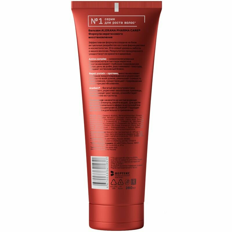 Бальзам Alerana Pharma Care "Формула кератинового восстановления" 260мл (21951)