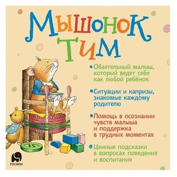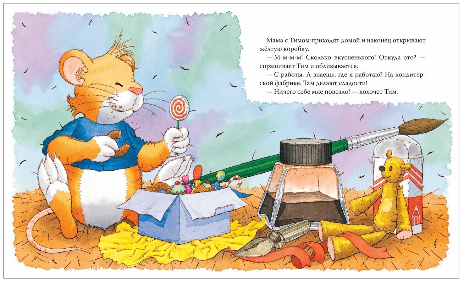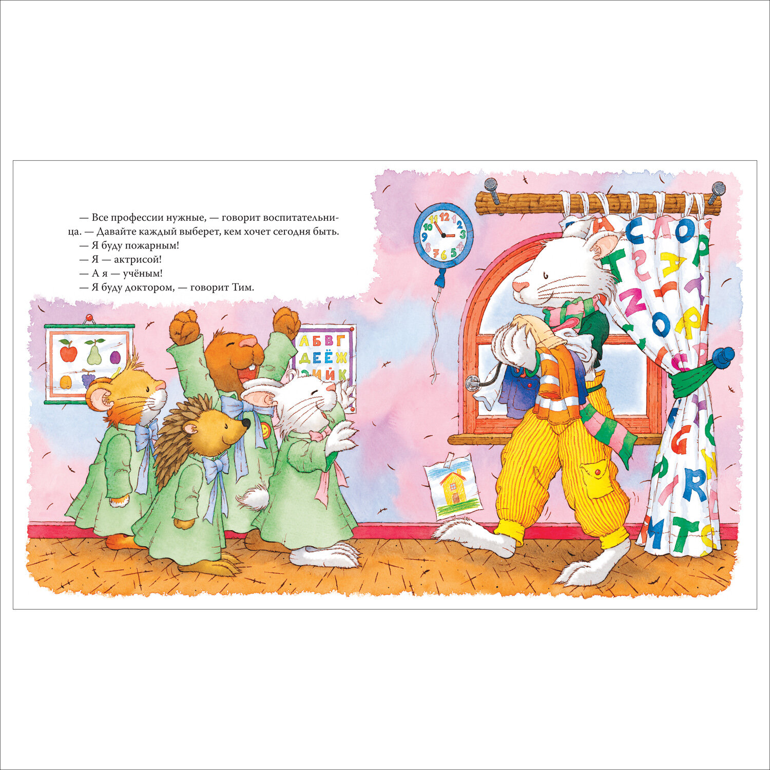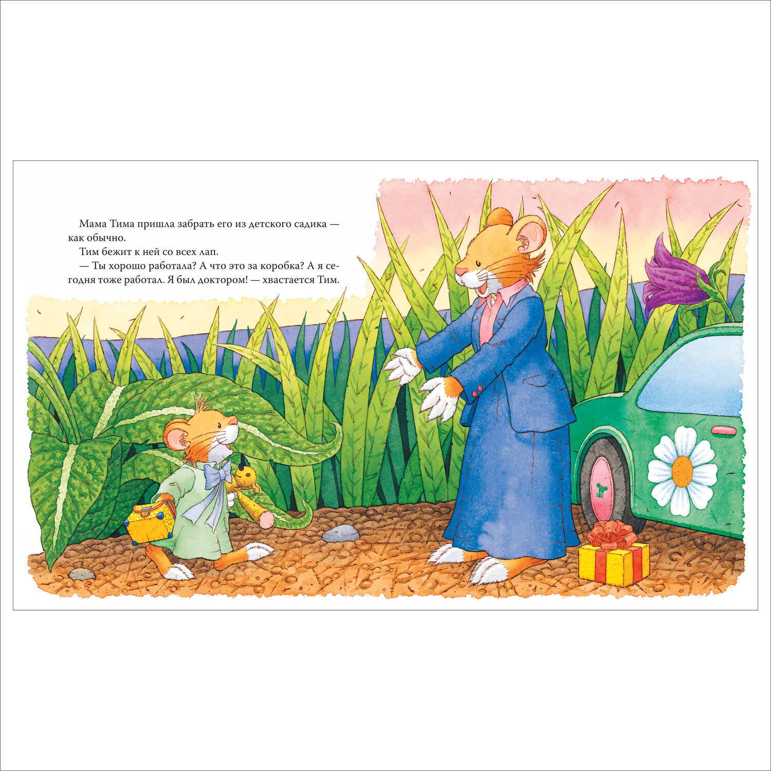 Очень интересные и полезные книжки про мышонка Тима. Конкретно эта о том, как Тим подрос и мама пошла на работу, а Тим познакомился с профессиями и понял что все мамы работают, и узнал как важно работать. История поможет и вашему ребенку понять, что мама обязательно вернется с работы и все будет хорошо. Картинки яркие, текст простой и понятен ребенку 3 лет. Ребенку очень нравятся книжки от Тиме, собрали уже неплохую коллекцию и заказали еще