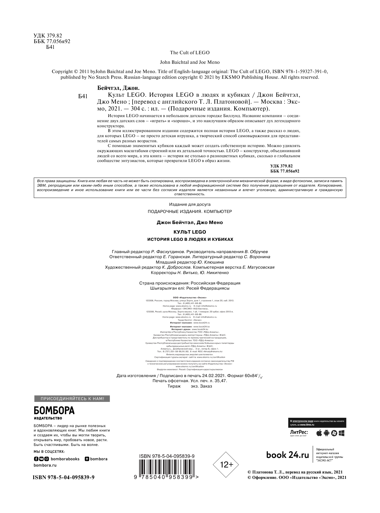 Культ LEGO. История LEGO в людях и кубиках (Д. Бейчтэл); Эксмо, БОМБОРА, 2021