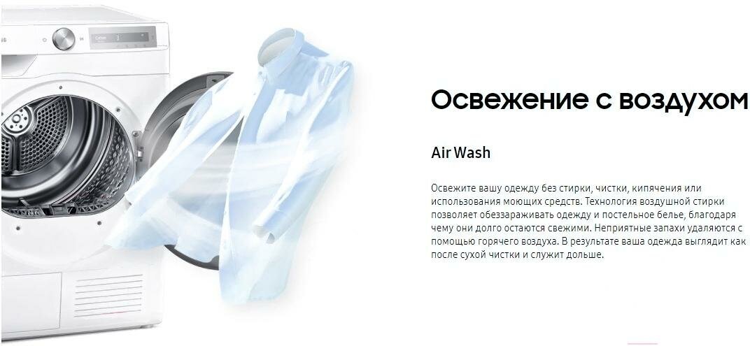 Освежите вашу одежду без стирки, чистки, кипячения или использования моющих средств. Технология воздушной стирки позволяет обеззараживать одежду и постельное белье, благодаря чему они долго остаются свежими. Неприятные запахи удаляются с помощью горячего воздуха. В результате ваша одежда выглядит как после сухой чистки и служит дольше.