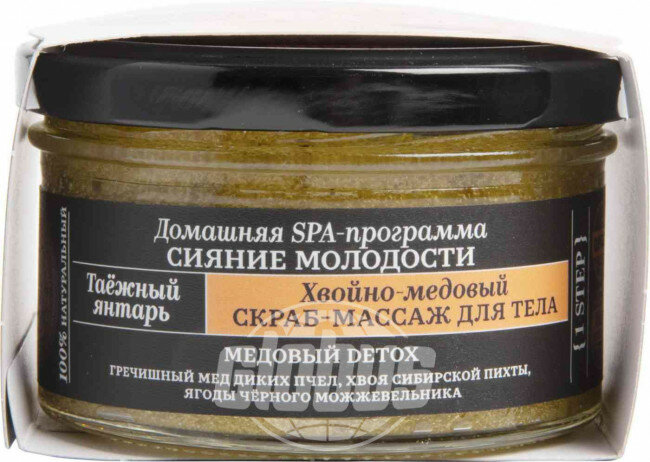 Массаж – то, о чем мечтает каждый после напряженного дня. Этот хвойно-медовый скраб-массаж оказывает обновляющий детокс-эффект на всё тело, расслабляя и тонизируя. Гречишный мёд глубоко питает и увлажняет, улучшает текстуру кожи, выравнивает её и придаёт гладкость. Хвоя сибирской пихты и ягоды сибирского можжевельника разглаживают кожный рельеф за счёт лимфодренажного эффекта, а также глубоко очищают и тонизируют кожу. Ароматы натурального меда и сибирских трав способствуют повышению настроения.