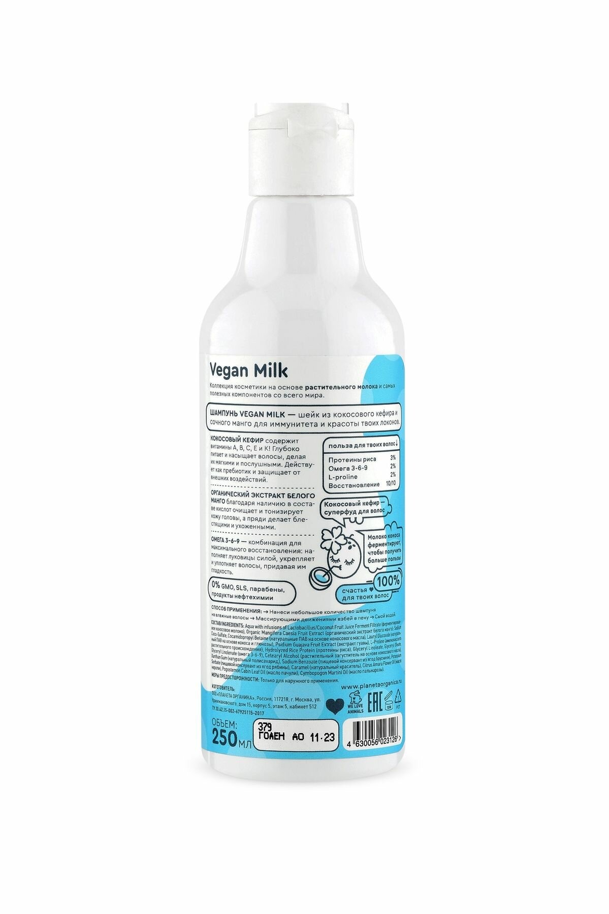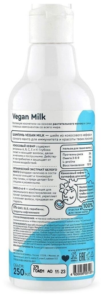 Шампунь для волос Planeta Organica Vegan Milk Кефирный 250мл