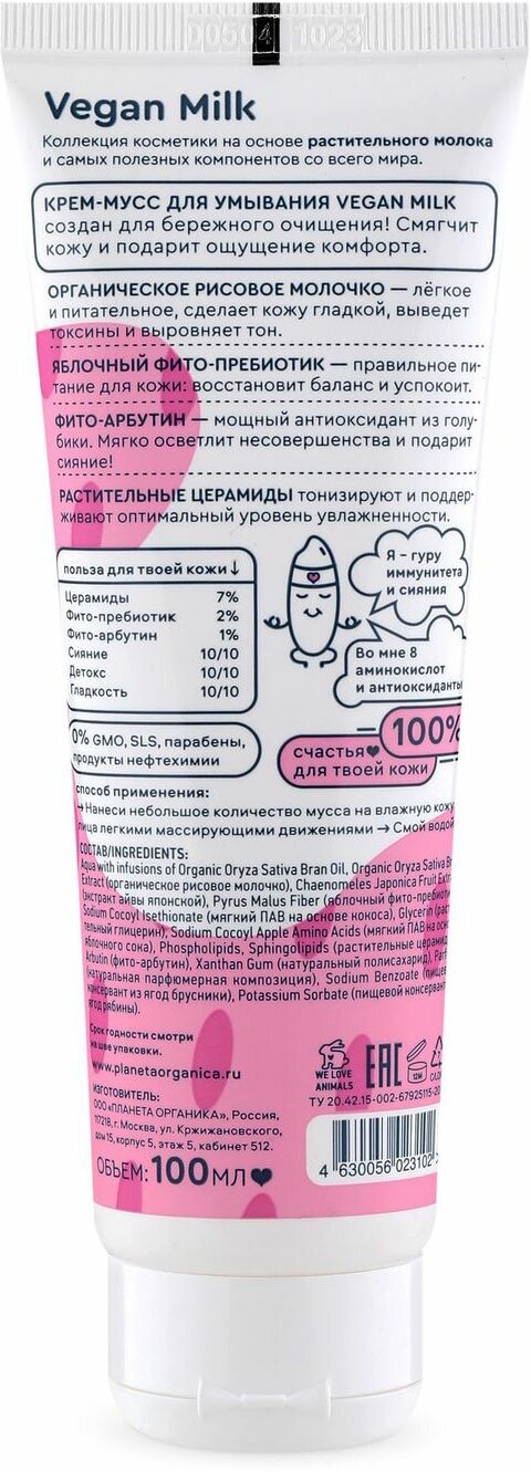 Крем-мусс для умывания Planeta Organica Vegan Milk 100мл