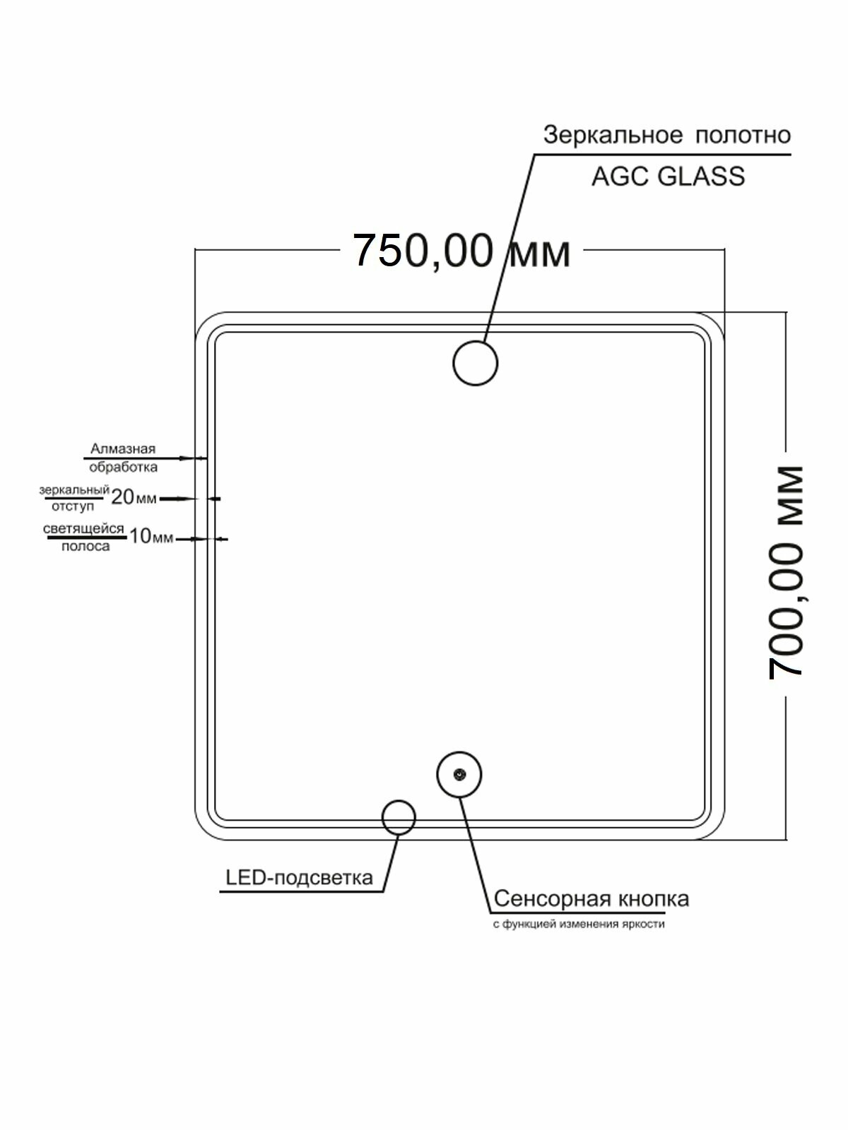 | Ширина зеркала | 750.000 |