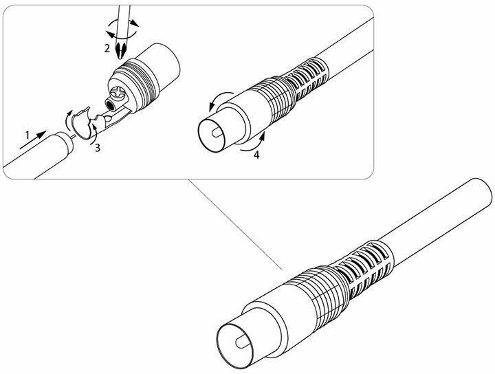 Разъем PROconnect предназначен для подключения эфирного, спутникового и кабельного телевидения с помощью радиочастотного кабеля. Такой разъем монтируется на телевизионный кабель и передает идущий по кабелю сигнал на ТВ устройства. Колпачок имеет амортизатор кабеля, который позволяет кабелю гнуться только с безопасным радиусом изгиба. Простой монтаж и надёжное соединение, обеспечат защиту от помех и внешних воздействий.