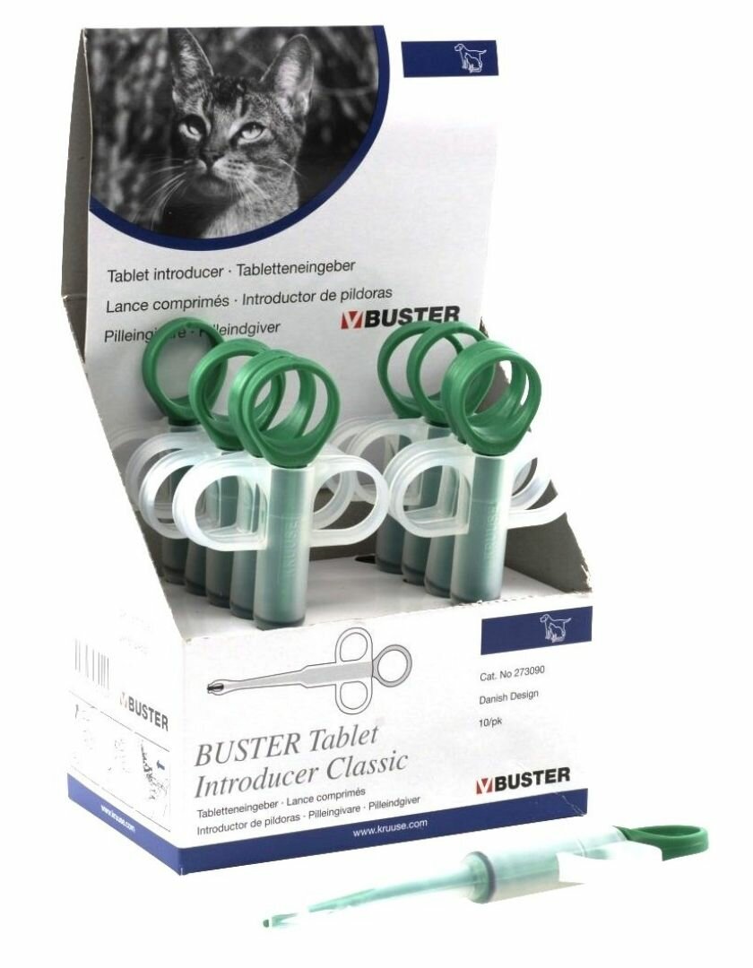 Таблеткодаватель для кошек и собак BUSTER позволит без проблем дать таблетку животному, когда это необходимо. Приспособление имеет мягкий резиновый наконечник, который не будет травмировать ротовую полость животного.Чтобы использовать пиллер, необходимо закрепить таблетку в резиновом наконечнике. Затем поместить наконечник таблеткодавателя с таблеткой или пилюлей на корень языка животного и нажать на специальный поршень, который вытолкнет лекарство. После этого извлечь прибор и закрыть животному пасть, чтобы простимулировать сглатывание.
