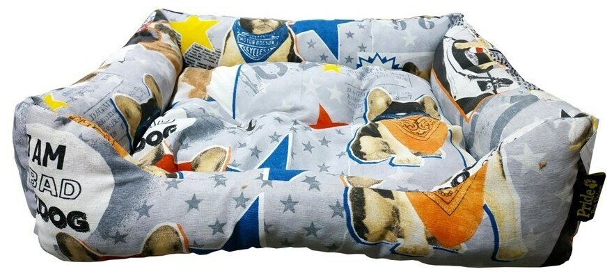 Лежанка диско ДОГ от Pride - прекрасный выбор для Вашего любимого питомца! Верхняя ткань - плотный жаккард с ярким принтом. Высокий процент натурального волокна (хлопок) в составе обеспечит меньшую электризацию. Наполнительполиэфирное волокно высокого качества, которое долгое время не потеряет своей упругости при эксплуатации и стирке. Борт защищает от холода и создаёт чувство защищенности. Лежак имеет мягкую съемную подушку и прочное водонепроницаемое дно из ПВХ для удобства эксплуатации и стирки по мере загрязнения. Данная лежанка выпускается в двух размерах - Вы сможете подобрать именно ту, которая подходит Вашему питомцу.состав: ткань – 54% хлопок + 46% полиэстер (мебельный жаккард), наполнитель - 100% полиэфирное волокно (синтешар).уход: химчистка, стирка в деликатном режиме.Для лежанки размером по внешним краям 70х60 см: высота - 17 см, подушка - 51х42 см