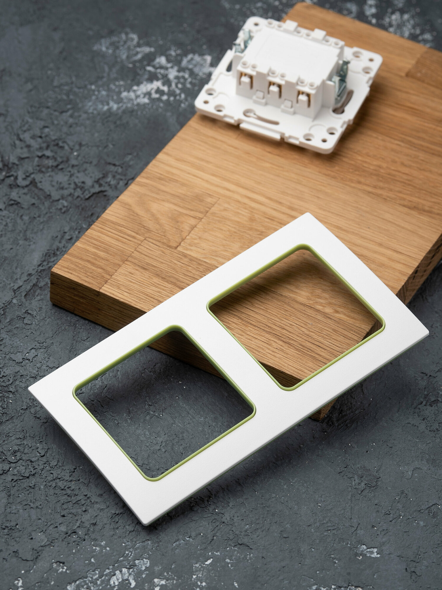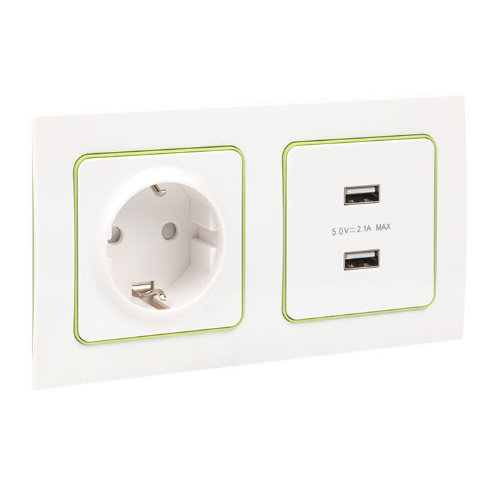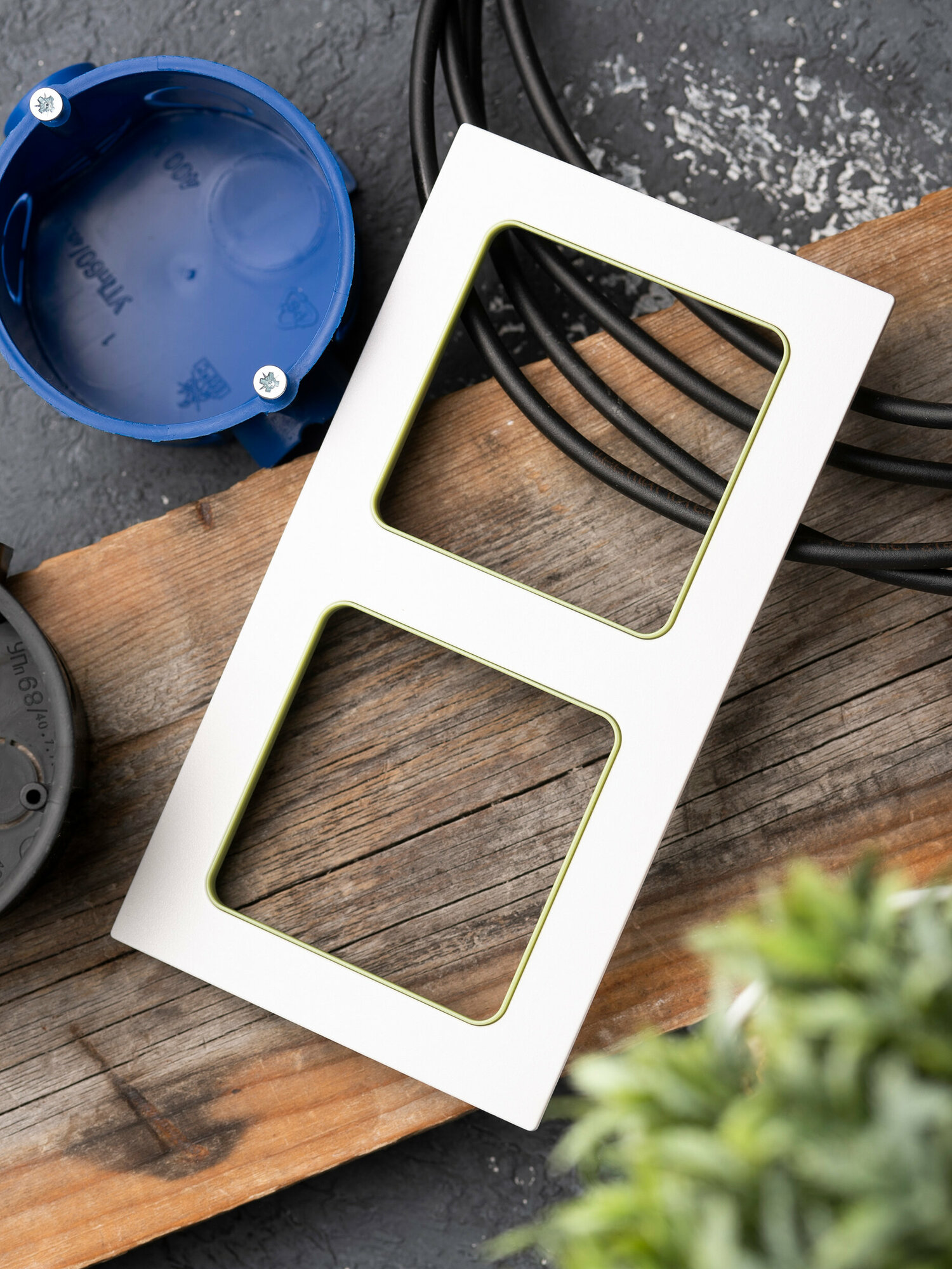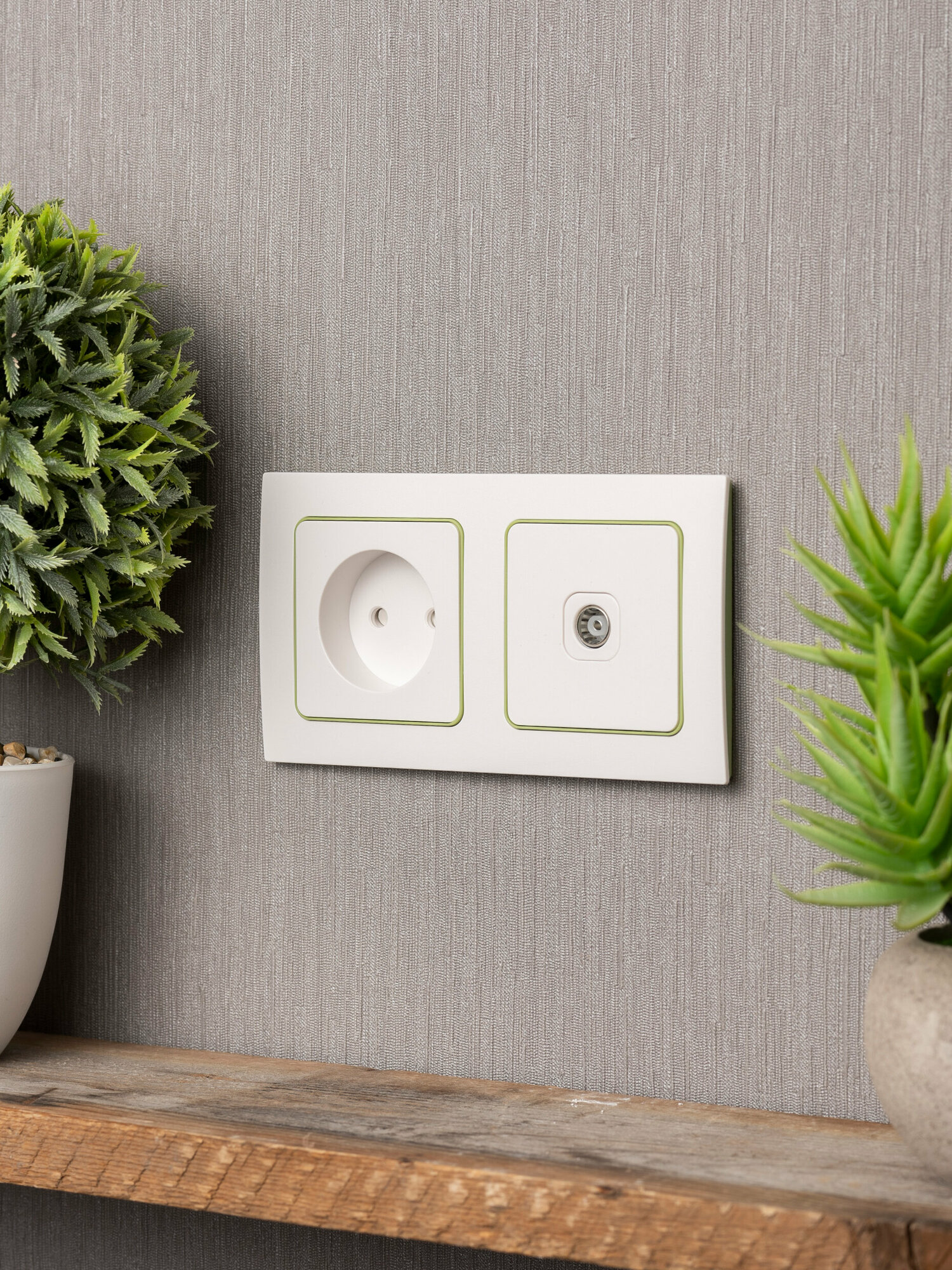 Рамка EKF Стокгольм 2-местная белая с линией цвета зеленый