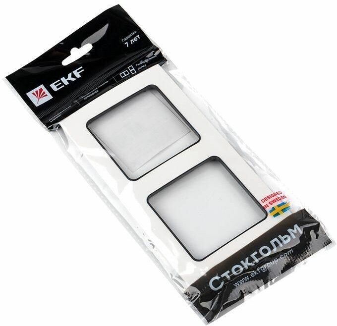 Рамка EKF Стокгольм 2-местная белая с линией цвета черный