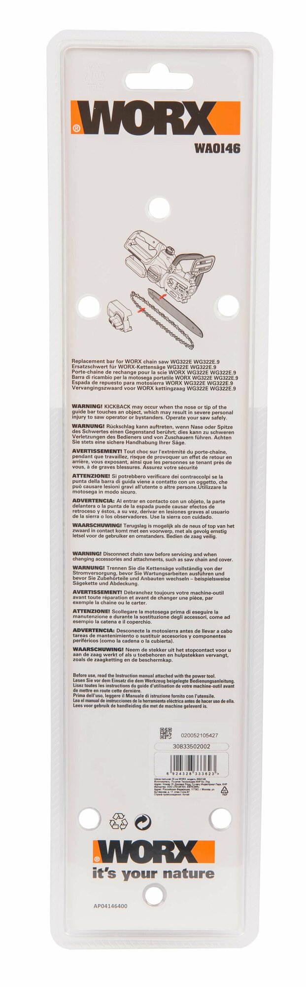 Шина для пилы WORX WA0146 совместима с цепными пилами WG322E, WG322E.9, WG305.